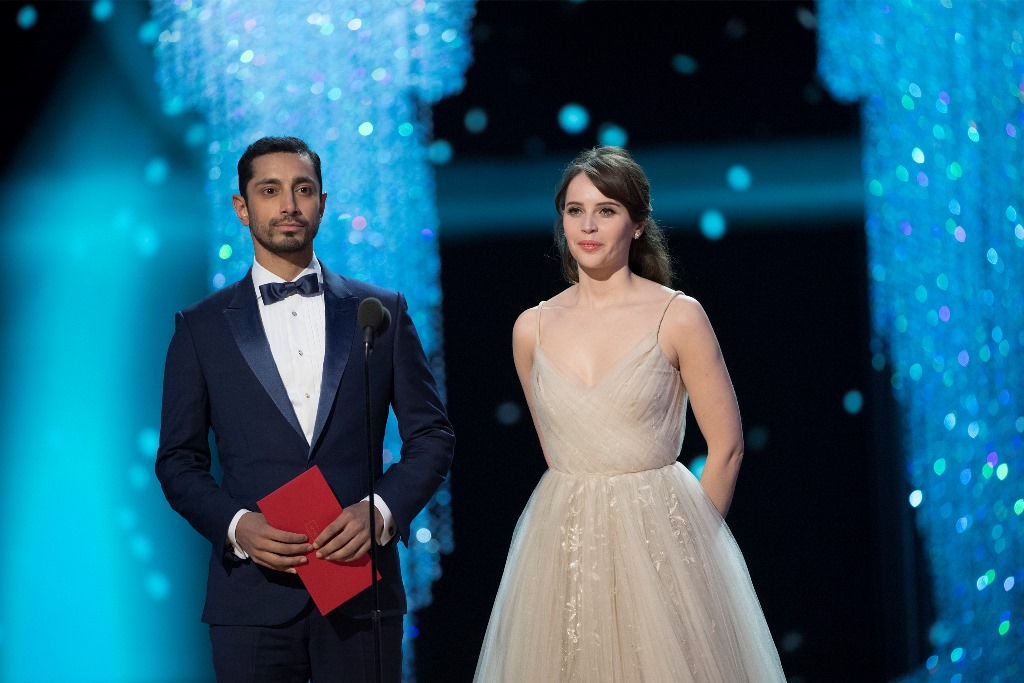 As a presenter there is no pressure on you, so you can wear something a little unusual, and if it doesn’t work out, it’s not like the look will live on forever. Unless you wear something Bjork-swan-dress levels of crazy, a bad dress on a non-nominee is swiftly and easily forgotten. Like we will forget this dress, because it is totally unmemorable and it’s not like Felicity Jones did anything interesting last night, anyway, besides stand next to Riz Ahmed. And that will be all we remember: At the 2017 Oscars, Felicity Jones stood next to Riz Ahmed.
