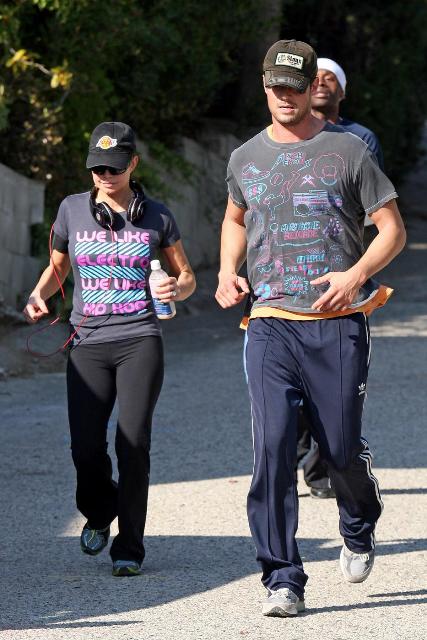 So Fergie has either chosen not to believe the other woman’s claims or she’s decided to forgive him. Either way, they’re putting up a united front. Here they are out for a run yesterday before the LA premiere of Nine and then again together on the carpet, publicly announcing that they have moved past the philandering.