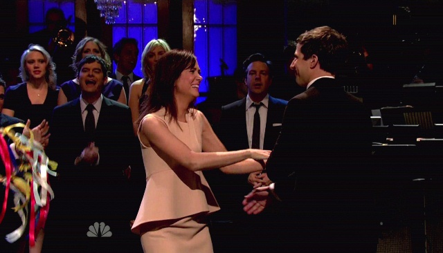 But it wasn’t only Kristen. Andy Samberg and Jason Sudeikis are leaving too. Though not officially confirmed, it was apparently obvious, especially for Kristen and Andy, during a graduation sketch that featured her last-dancing with several cast-members and Lorne Michaels, and Lazy Sunday 2. (I want to cry at how much Lorne loves Kristen.)