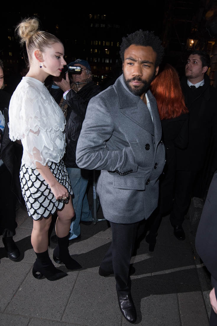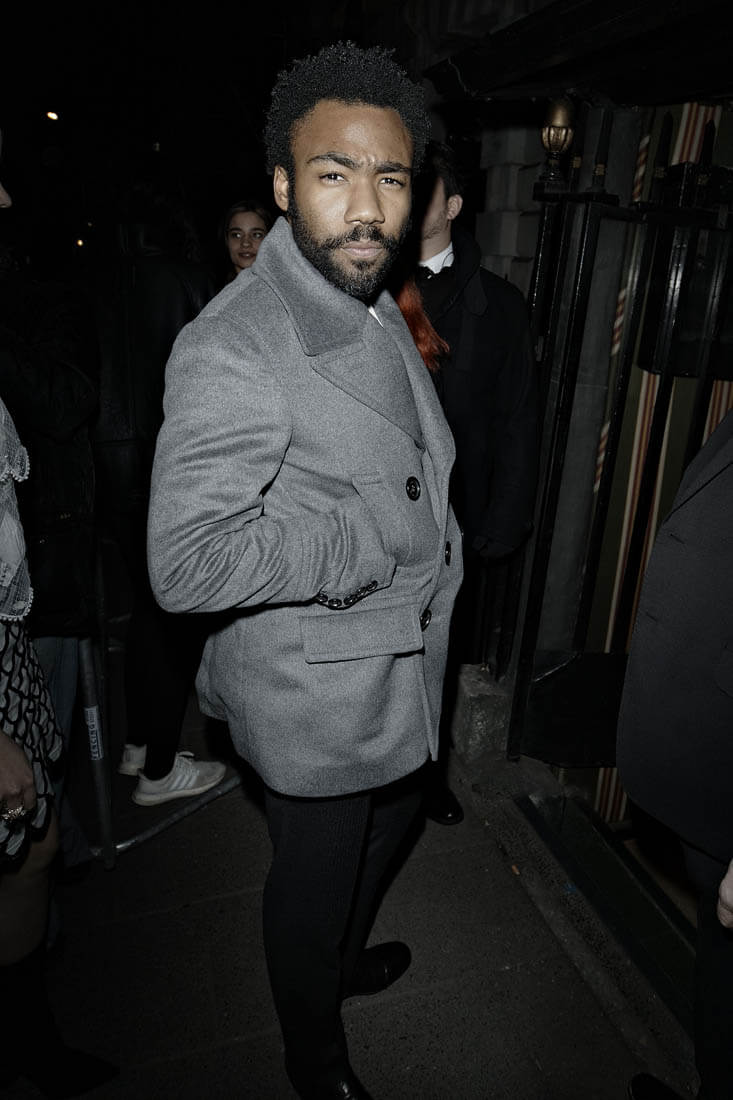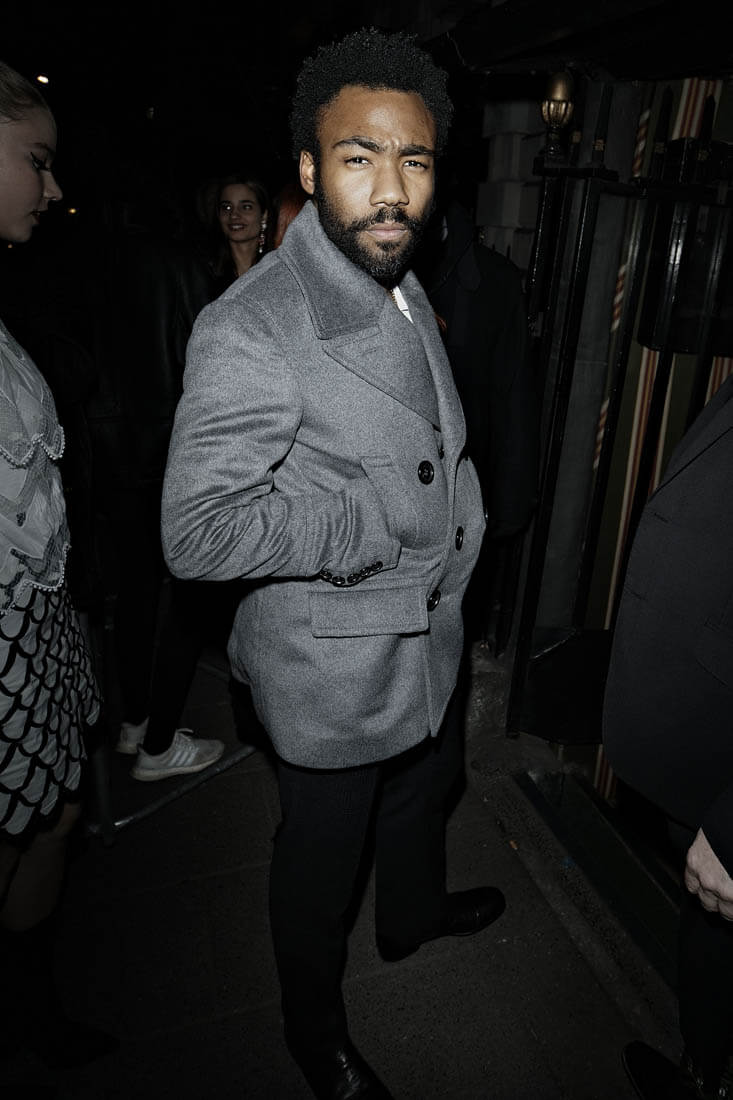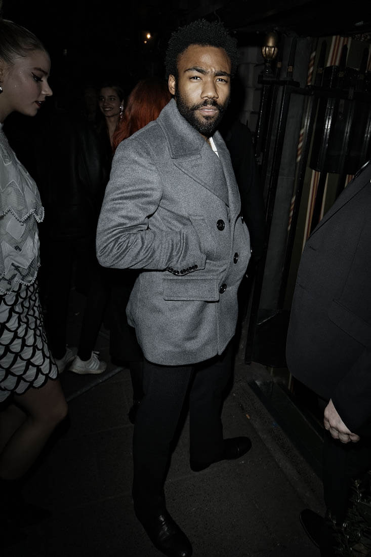 Attached - Donald Glover out in London last night during London Fashion Week.