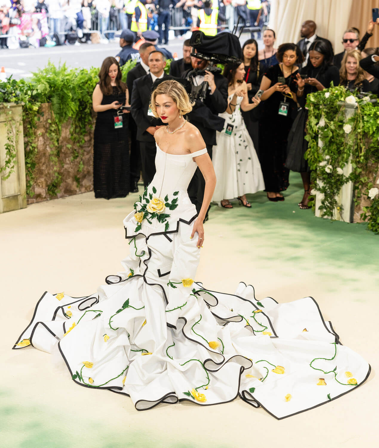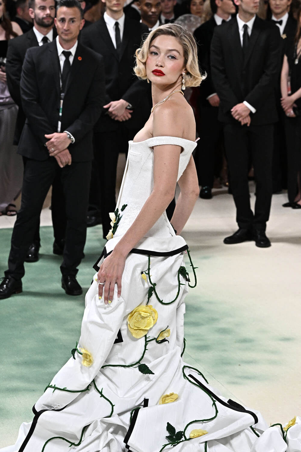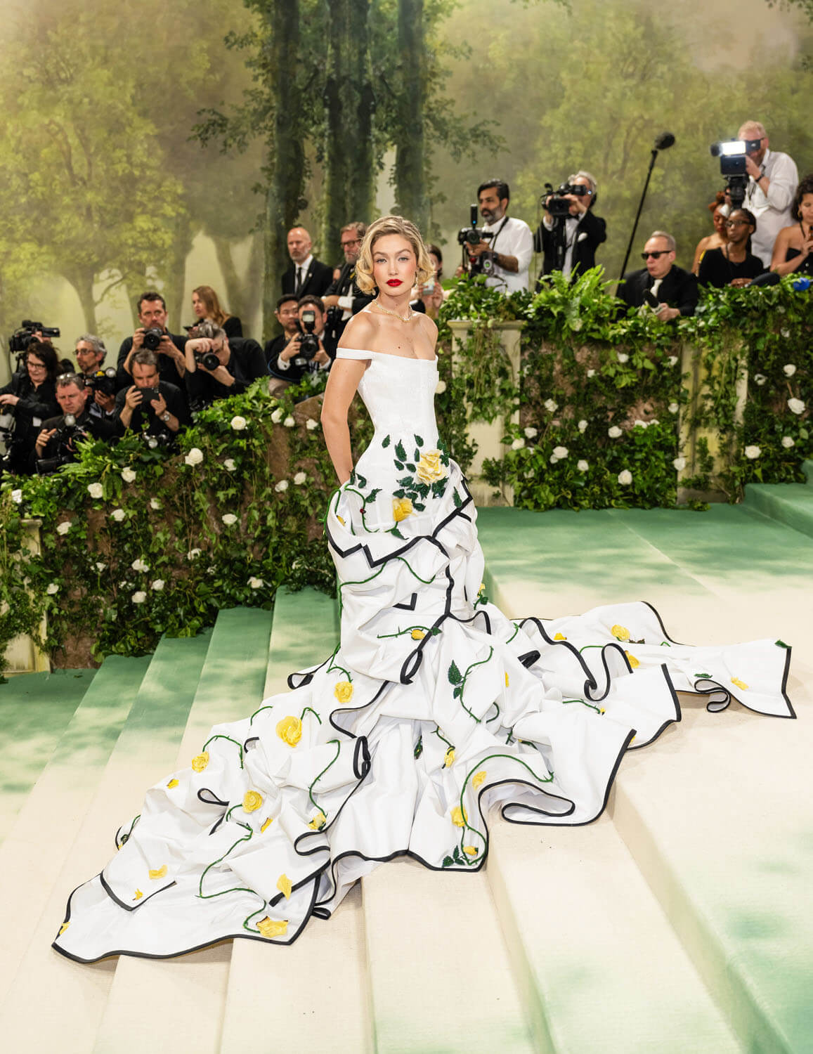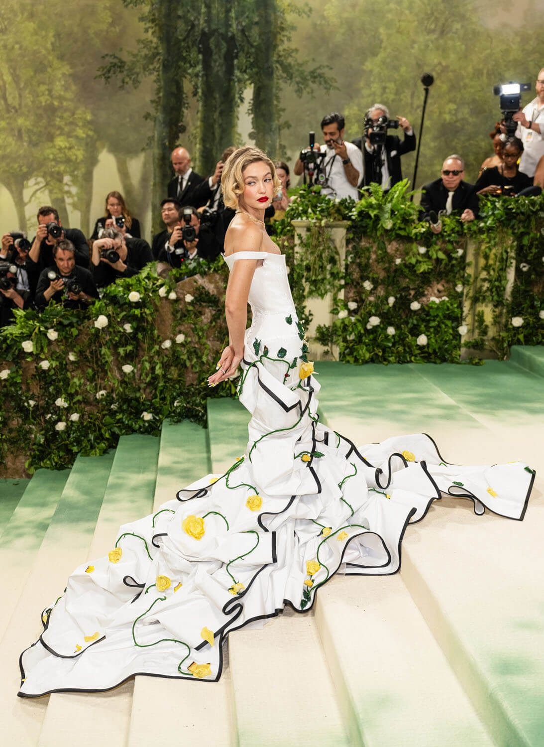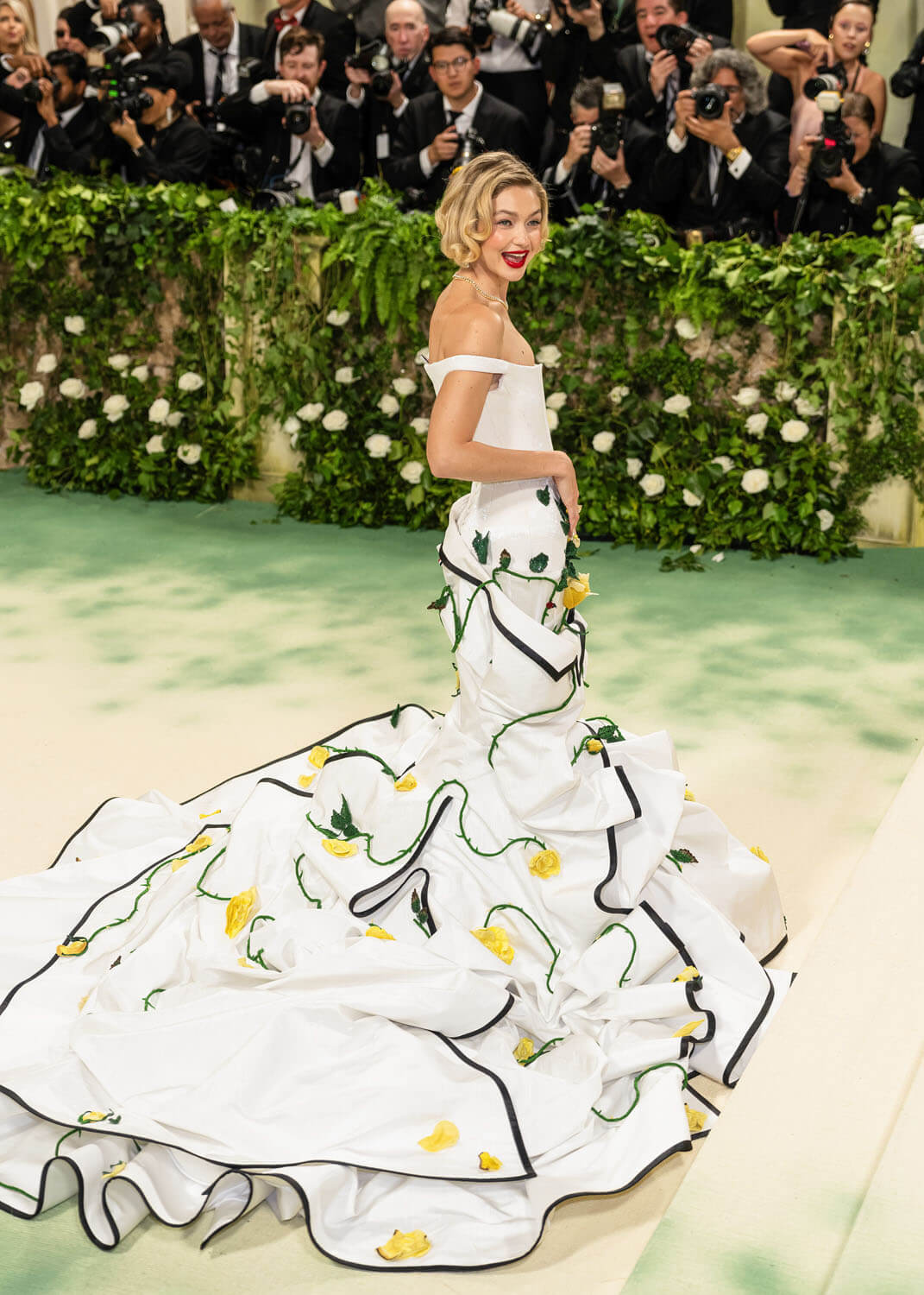 gigi hadid wears a custom thom browne corset dress embroidered with over two million white micro bugle beads for the 2024 met gala.@metmuseum#thombrowne #gigihadid #metgala pic.twitter.com/TprP53JuxV