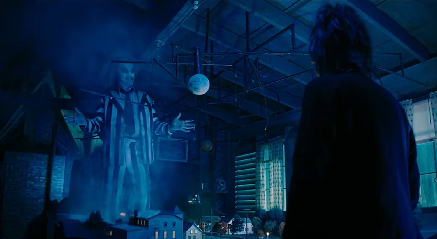 What does stick out, though, are the special effects. Some are obviously practical, like the shrunken guy’s head, others are CG, like Betelgeuse’s eyes popping out. A lot of it looks a little too clean. This is the natural consequence of evolving technology—computer effects are lightyears better than they were in the 1980s, when they were rudimentary, at best. Of course, this new tool allows Burton & Co. to do tricks they could not have done—at least not so cheaply and easily—in the Eighties. And the reality is, computer effects are usually cheaper than practical ones, another reason to use CG over in-camera trickery.