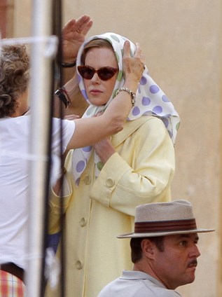 I believe these are the first shots of Nicole Kidman on set in Monaco as Grace Kelly. If this is a wig, it’s a very good one. Or did she take her extensions out? Princess Grace’s title, like that of her daughter-in-law Charlene, was Her Serene Highness. And Granny Freeze certainly looks serene here.