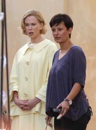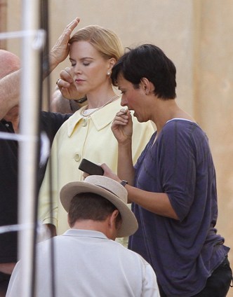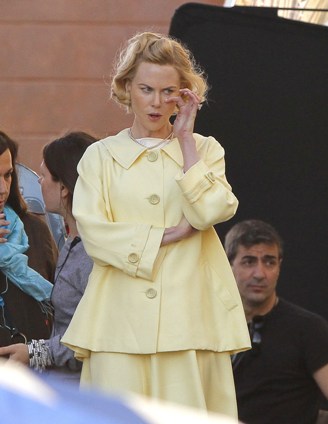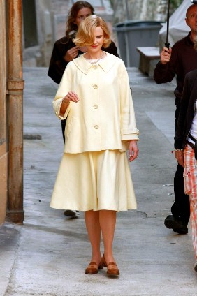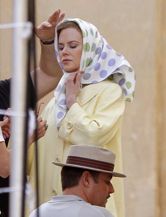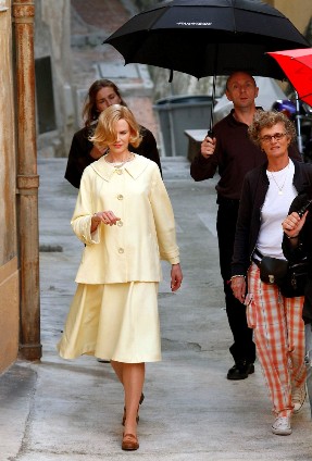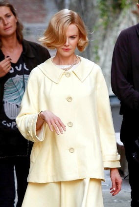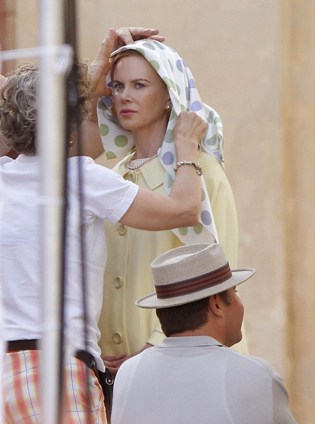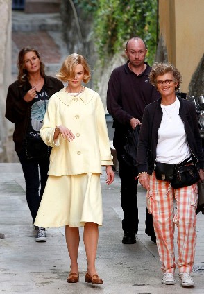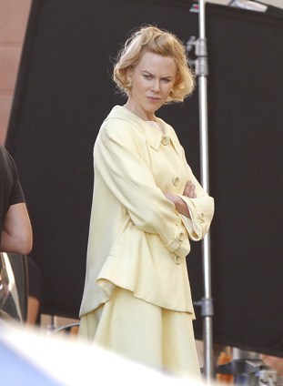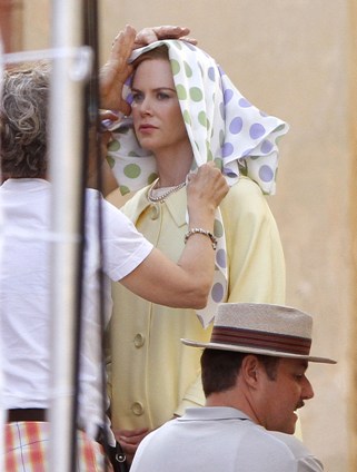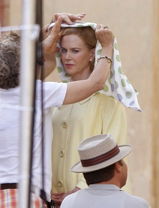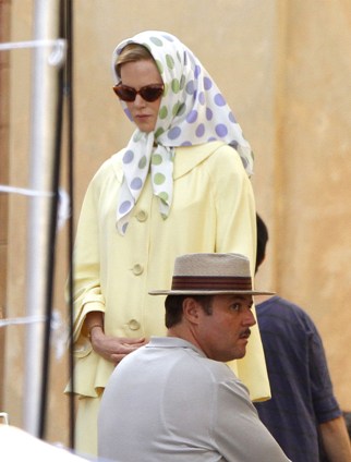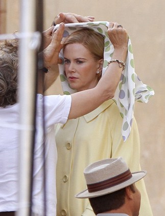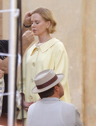 I believe these are the first shots of Nicole Kidman on set in Monaco as Grace Kelly. If this is a wig, it’s a very good one. Or did she take her extensions out? Princess Grace’s title, like that of her daughter-in-law Charlene, was Her Serene Highness. And Granny Freeze certainly looks serene here.