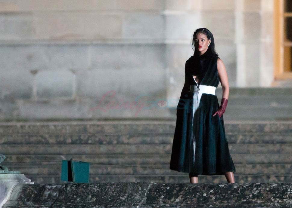 News broke a couple of days ago that Rihanna has signed on to be the new face of Dior and will front the brand’s upcoming Secret Garden campaign. She is the first black woman to represent the House of Dior. And here are some shots, taken March 10th but only released today, of Rihanna at Versailles at the photo shoot.