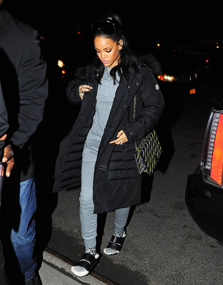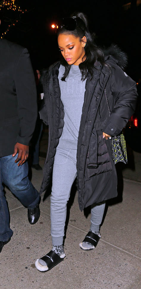 From a personal brand and marketing perspective, I do love what Rihanna’s been building. She has a voice part in a movie she doesn’t have to carry (Home), we’re all waiting for the new album, the images for Dior will likely be released around the same time, they’re shooting the documentary, and she’s got a deal with Puma. Still, none of it feels like overkill. And even when she’s basically in pyjamas and slippers, with her bitch socks on, she’s still more effortlessly stylish than almost everyone else. Think of the effort you see in someone like Victoria Beckham. And how you never, ever get that vibe from Rihanna. There are few as fascinating as she is right now. F-ck, I’m scared to say this but… Beyonce might not be as fascinating.