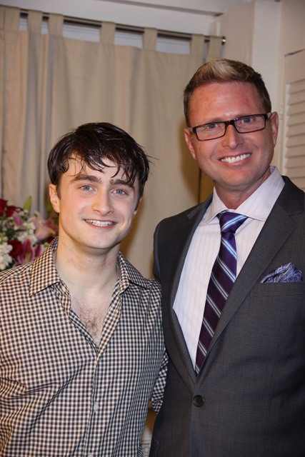 Here’s Daniel Radcliffe backstage after a performance of How To Succeed In Business Without Really Trying on Broadway the other night.