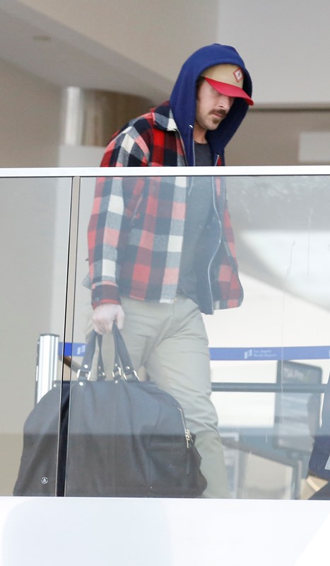 Eva was in LA yesterday shooting a commercial in her favourite brown booties. Meanwhile, Esmeralda’s father, Ryan Gosling, arrived back in LA after filming The Nice Guys in Atlanta last week. Time for him to take over while she works.
