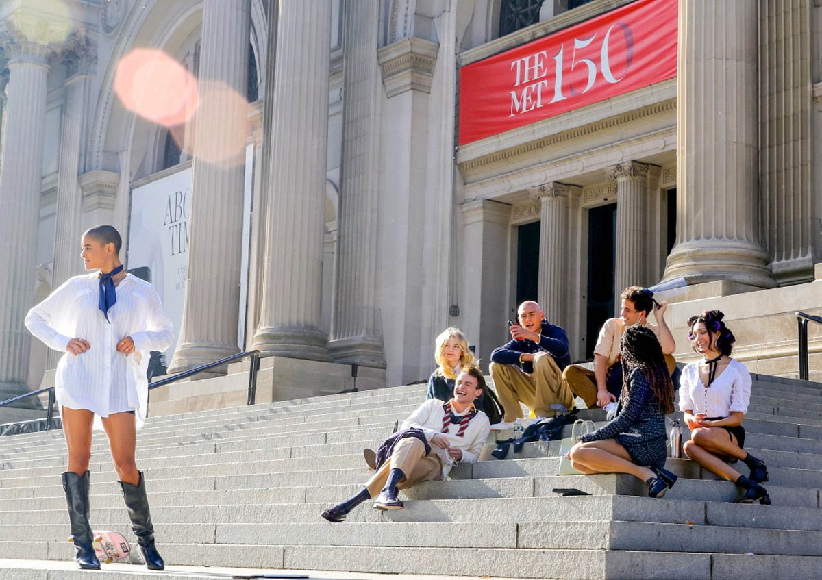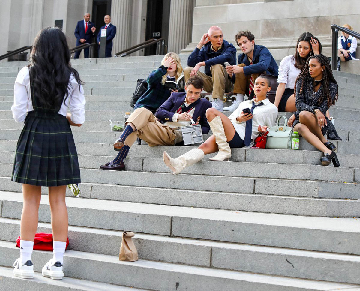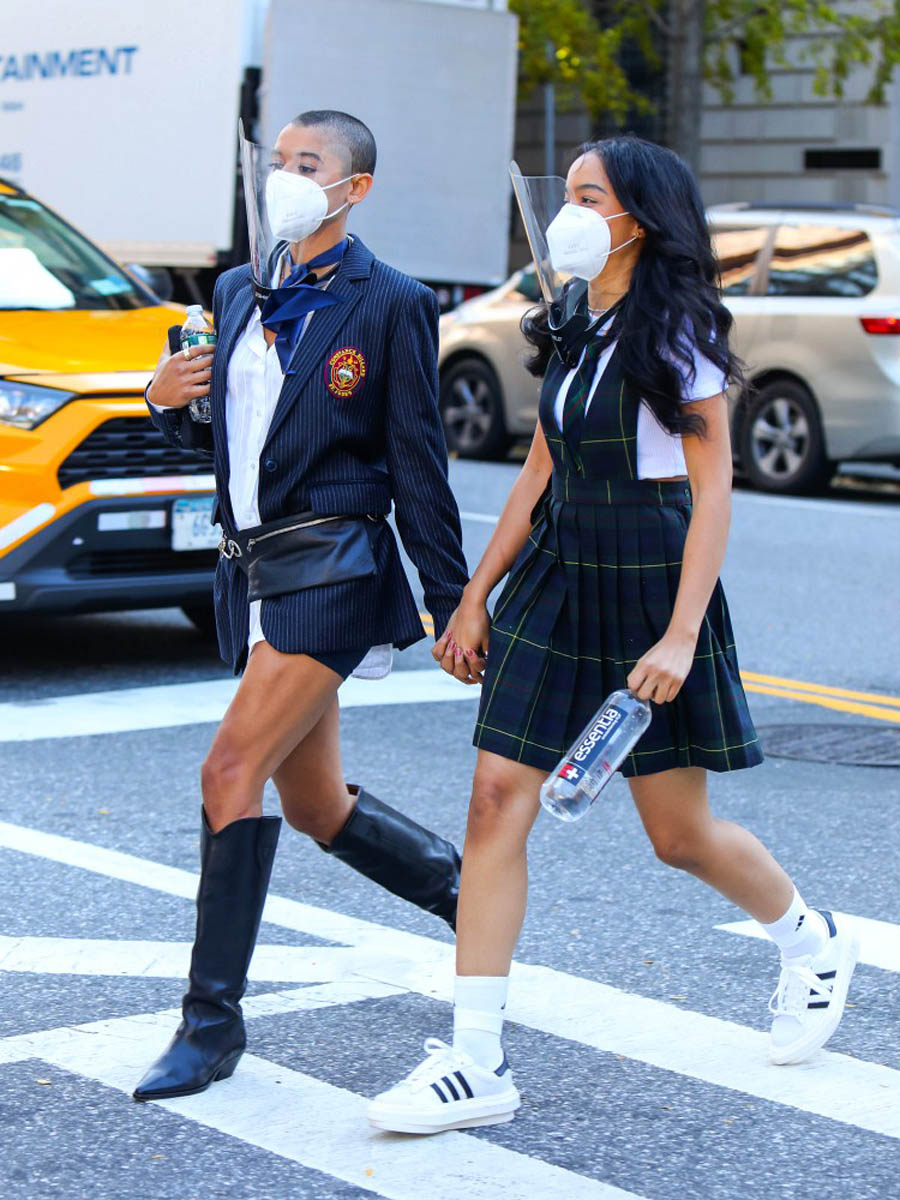 There was a lot of excitement online yesterday when the new Gossip Girl cast was photographed filming on the steps of the Met as people are now trying to figure out who’s playing whom. Not that the characters will be the same – we’re not getting a new Blair Waldorf – but the archetypes are expected to be represented, right? Who is the Chuck Bass of the crew? Or the Jenny Humphrey? Will the Serena Van Der Woodsen of 2021 be as boring as the OG? Blair Waldorf was the beating heart and the soul of Gossip Girl. Right now, if these shots are any indication, Jordan Alexander might be the queen bee who rules Constance Billard. She’s the one with the very short hair who is barely adhering to the school uniform. And she’s Canadian, a musician from Toronto who will no doubt become one of the biggest breakout stars of the series. I can’t wait to see more of the costumes (the original costumer designer, Eric Daman, is part of the new team) – and how Jordan wears the sh-t out of her wardrobe. She currently has about 8,500 followers on social media. This number should be increasing soon.