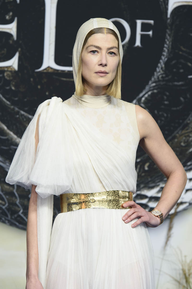 The key characters are Moraine (Rosamund Pike), an Aes Sedai searching for young people who might be this “dragon reborn”. With her is Lan (Daniel Henney), her “warder”, sort of like her bodyguard. They have Big Time Chemistry, but I am credibly informed that Lan has a different romantic storyline which, fine, but Henney and Pike are GREAT together and the person Lan is supposed to eventually fall for doesn’t have the same level of on-screen spark with him (yet, let’s hope, for the sake of the storytelling, that improves). Then there are the four kids—they’re like fully grown 20-somethings but they’re all such fresh-faced muppets it’s impossible not to think of them as kids—Rand (Josha Stradowksi), Perrin (Marcus Rutherford), Mat (Barney Harris), and Egwene (Madeleine Madden). I had to look up all of those names because even after three hours, I couldn’t remember any of them. Bad sign!