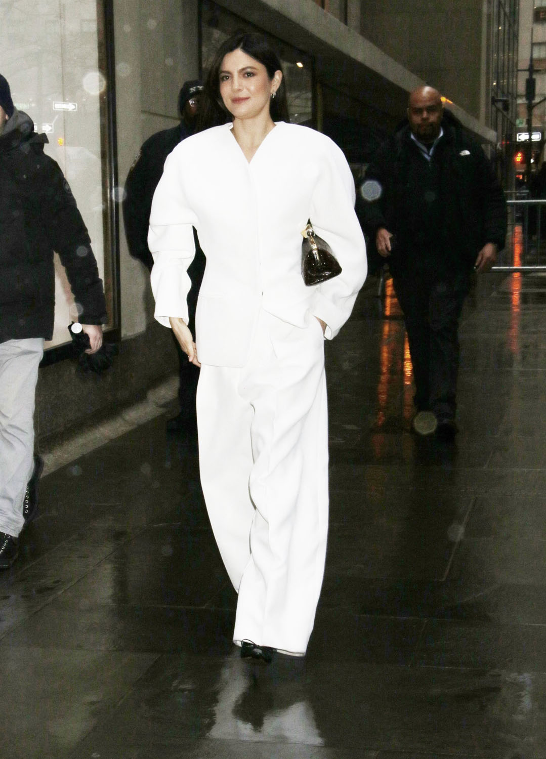 Case in point, here is Monica Barbaro in New York, looking breezy in a white suit that combines contemporary slouchy fit with Eighties power suit lines. I love it. She looks completely unbothered. At the same time, Mikey Madison stepped out, also in New York, in a great pair of trousers and cool shades. Heading into BAFTA weekend, she looks a little less relaxed. She’s expected in London on Sunday for those awards, where she is a double nominee, for Best Actress in a Leading Role, and the EE Rising Star Award. I think she has a pretty good shot at the Rising Star Award, and I posit it is that expectation on her making all the difference. She’s probably going to have to give a speech on Sunday. Just because they’re actors doesn’t mean they like extemporaneous speaking.
