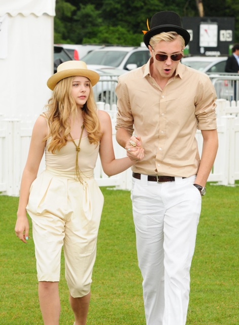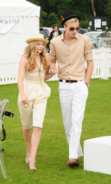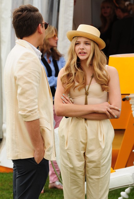 Chloe Moretz attended the Veuve Clicquot polo event in England yesterday with her brother, just 14 and already doing it better than Lohan herself. Look at her sucking in at the photo wall. There’s even a little oral fixation thrown in there the way Lindsay Lohan used to do it – always with a finger in the mouth, remember? Also a mouth that doesn’t seem to have been tampered with... yet.