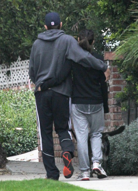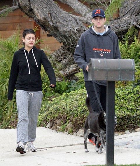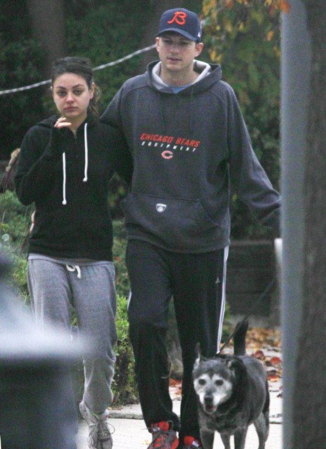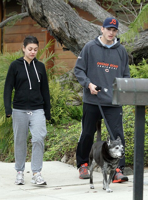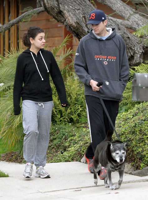 Attached - Mila Kunis and Ashton Kutcher walk the dog.