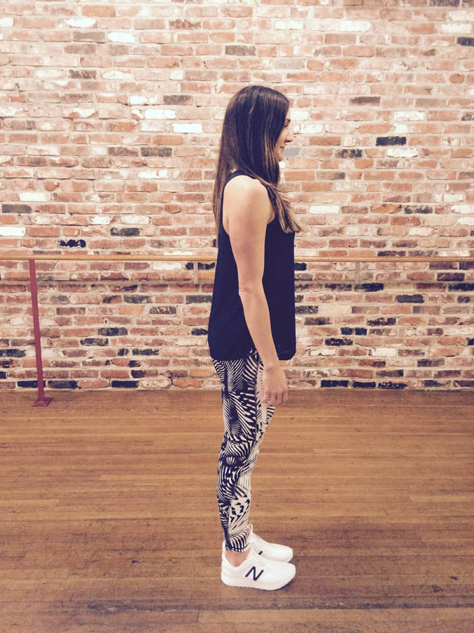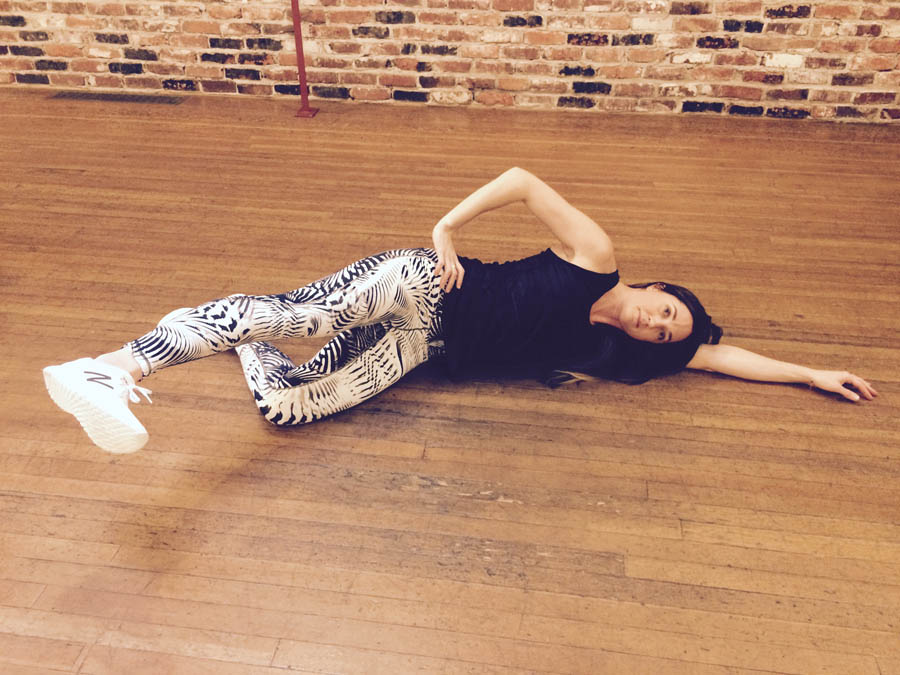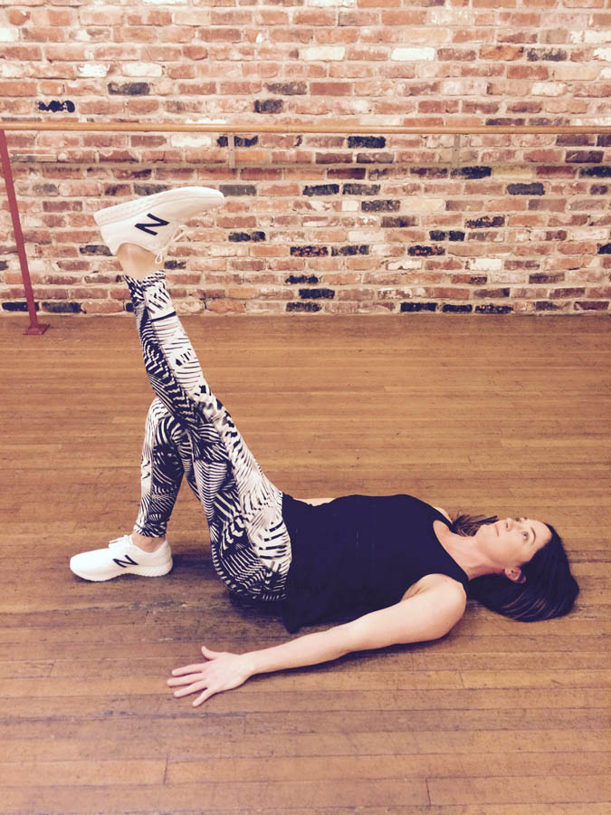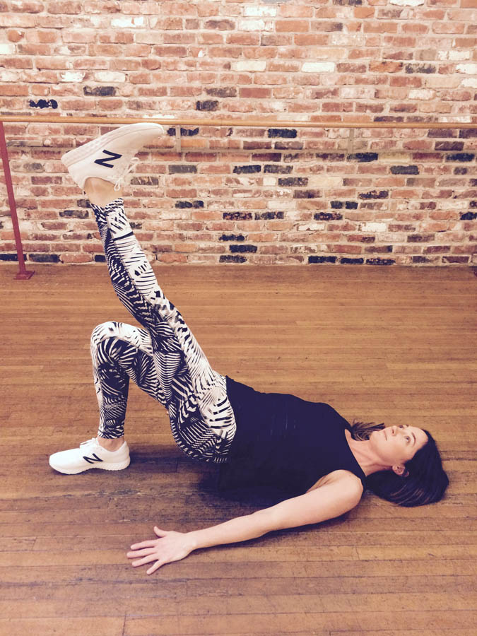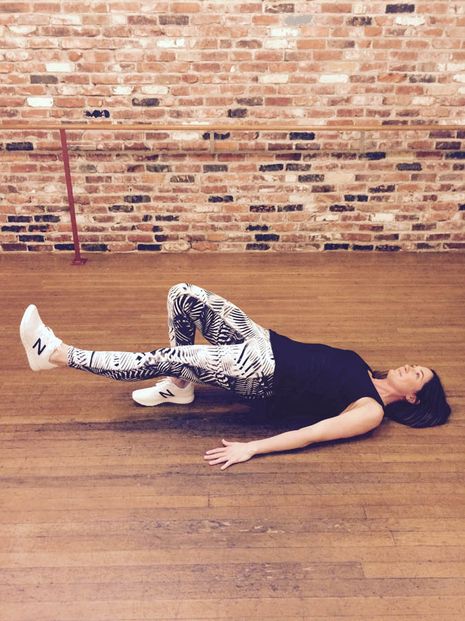 I used to make Lainey do this when she lived back in Vancouver and she would squirm around in pain after saying she felt like she had hamsters in her hamstrings. Start lying on your back, with your arms straight and pressed firmly into the ground (you should feel your triceps working here). Extend one leg straight to the ceiling, keeping a level pelvis and then lift and lower your hips 3 times. After three hip lifts, lift and lower your leg 3 times, again making sure you keep a level pelvis. Repeat this sequence 5 times before switching sides, working your way up to 10.