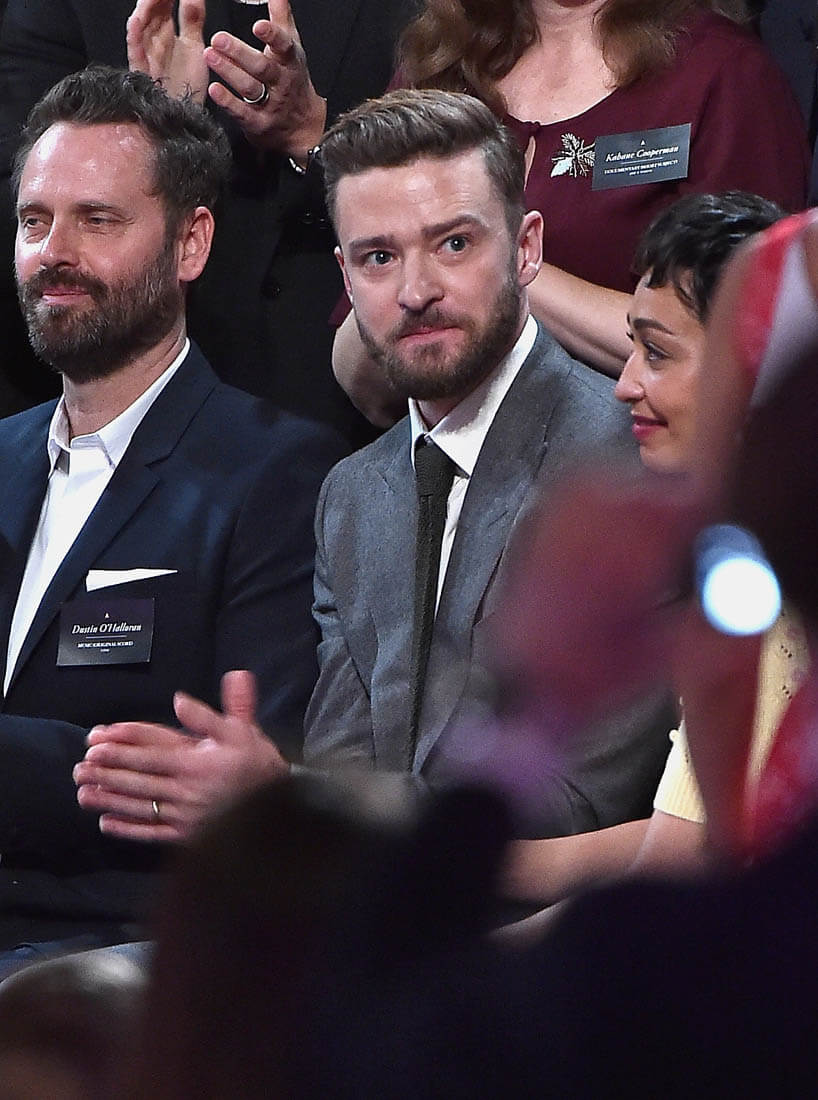 We now live in a world where Justin Timberlake can call himself an Oscar nominee. Small mercies, it’s not for acting. Here’s JT at the Nominees Luncheon yesterday being his flagrant self.
