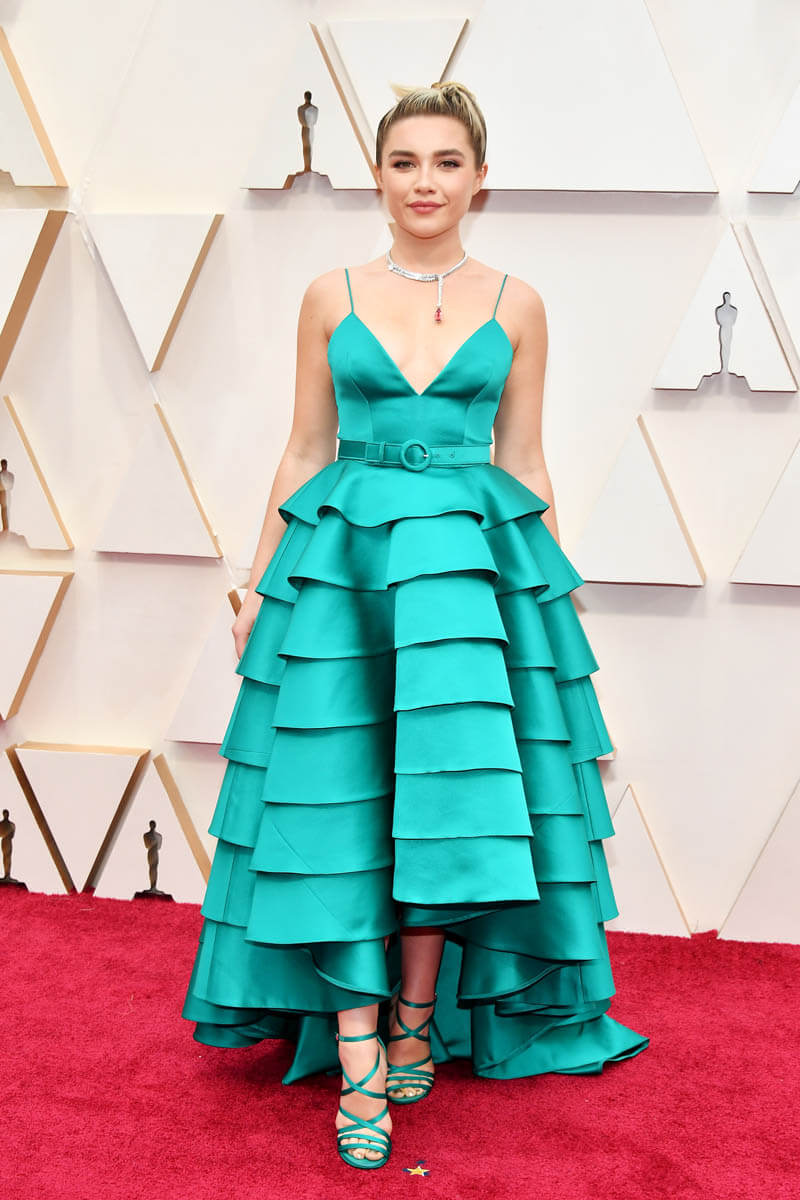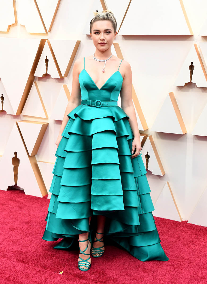 Case in point – Florence Pugh. Her teal Louis Vuitton gown was not my favourite, but while I didn’t love the look, I LOVED how much she committed to the whole ‘prom queen’ aesthetic: dyed-to-match shoes, the belt, the delicate accessories and pearly pink nails – I am a real sucker for leaning all the way in to a given look, and though I wouldn’t have favoured a ‘Saved By The Bell At The Oscars’ look myself, I love that she didn’t pull a single punch.
