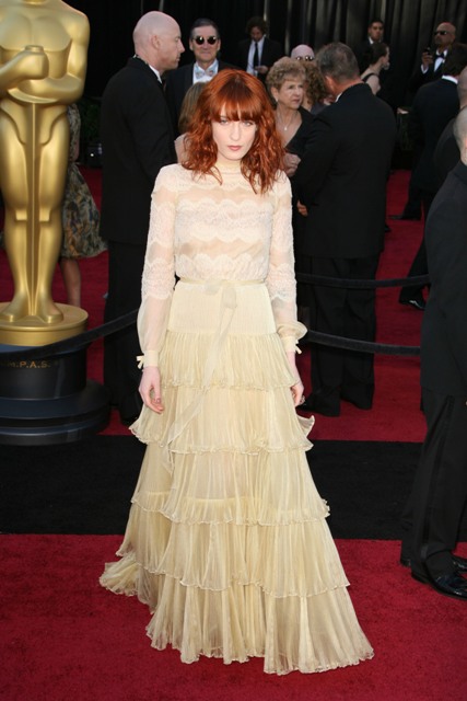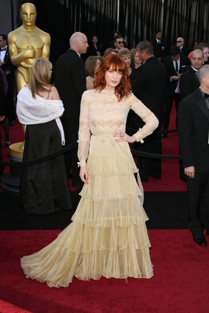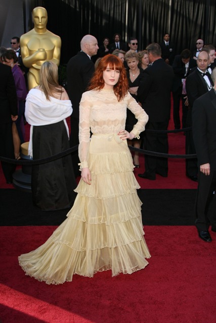 Florence of Florence and the Machine – who’s informally Florence Welch - obviously has a lot to be happy about. Not the least of which is being invited to perform at the Academy Awards. But did she look like she was enjoying herself? Or – let me rephrase – did she look, even marginally, like she was able to raise her energy level above ‘barely conscious and watching reruns on the couch’?