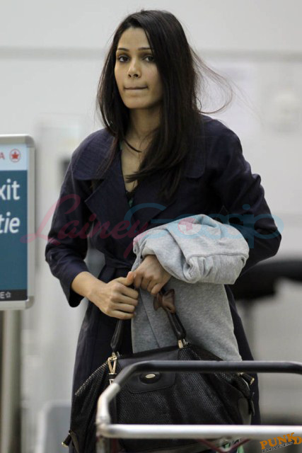 Freida Pinto flew in to Vancouver the other day for a quick pre-production visit and flew right back out, seen here at the airport on the weekend. She’ll be back soon enough to begin work on Rise of the Apes with James Franco. Jesus she is beautiful. Hope she and Franco have a make-out scene.