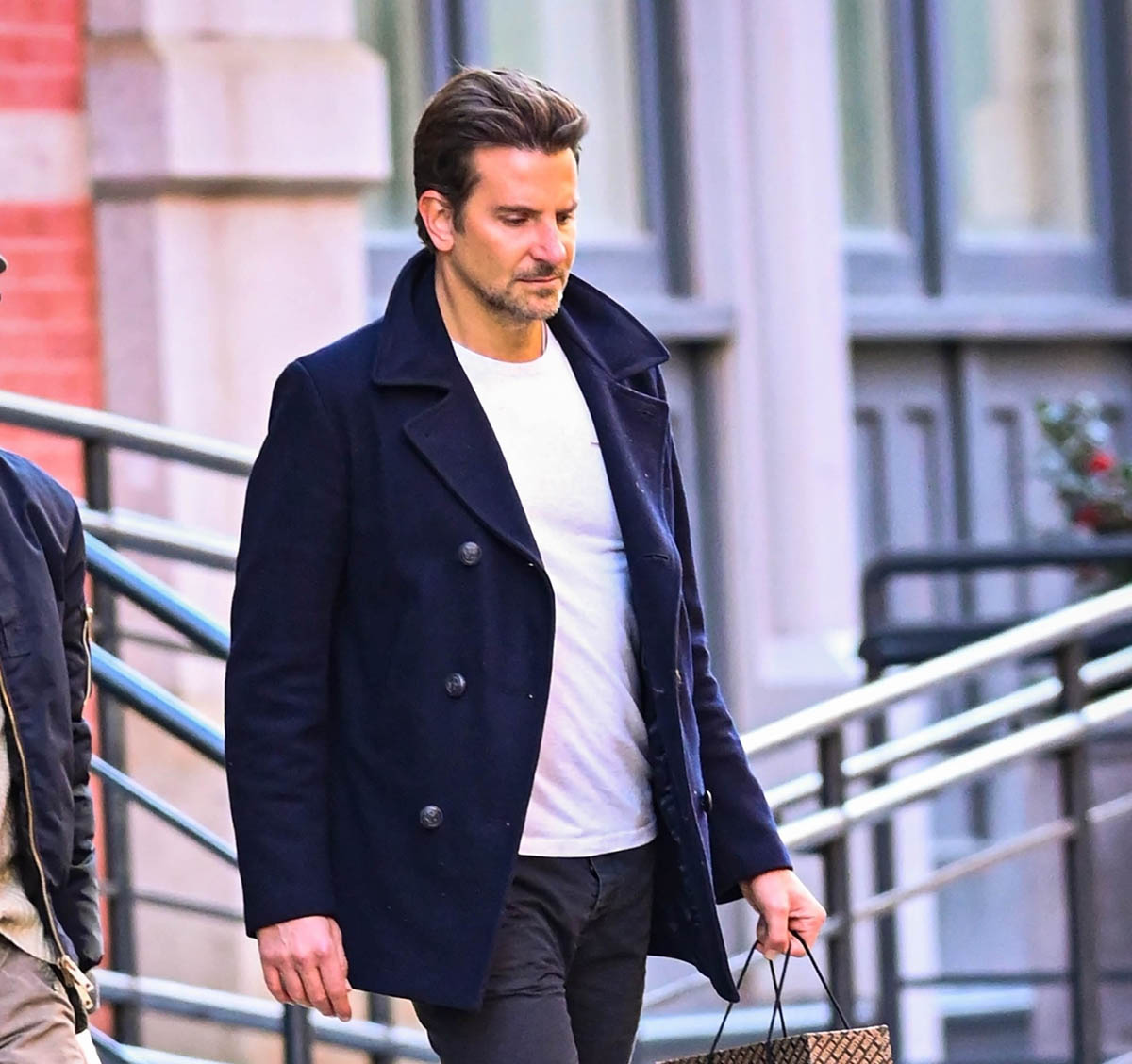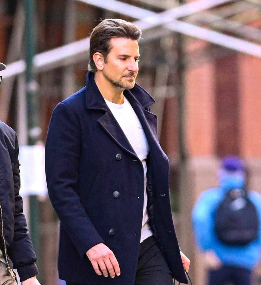 Here are some new shots Bradley Cooper out in New York today. His hair is looking GREAT – like getting to that classic Bradley Cooper hair length. Like Hangover length, who let the dogs out?