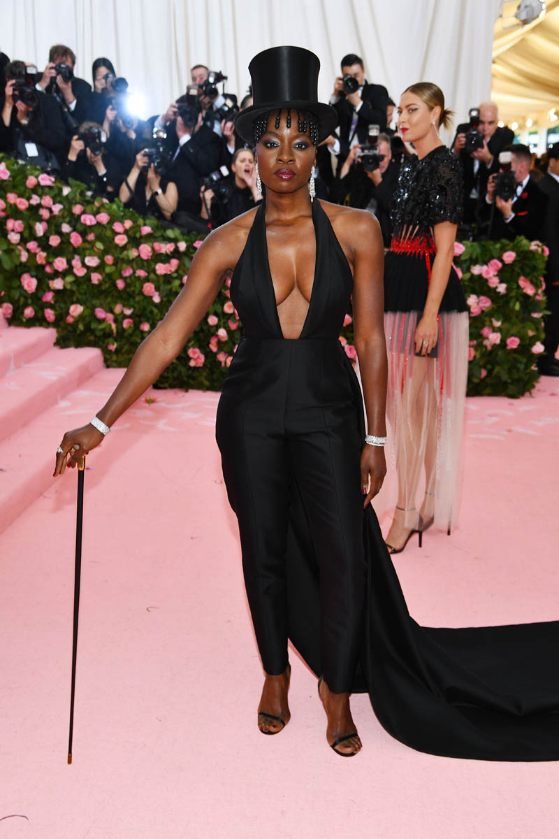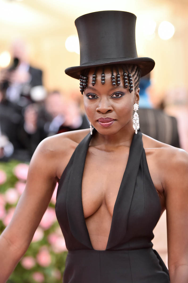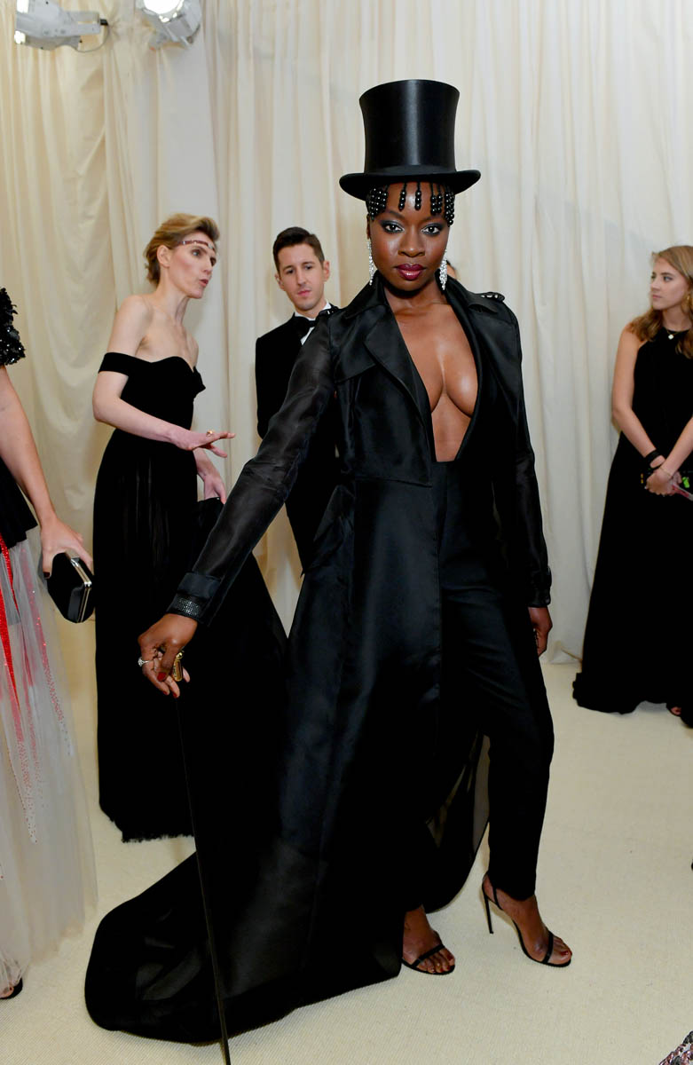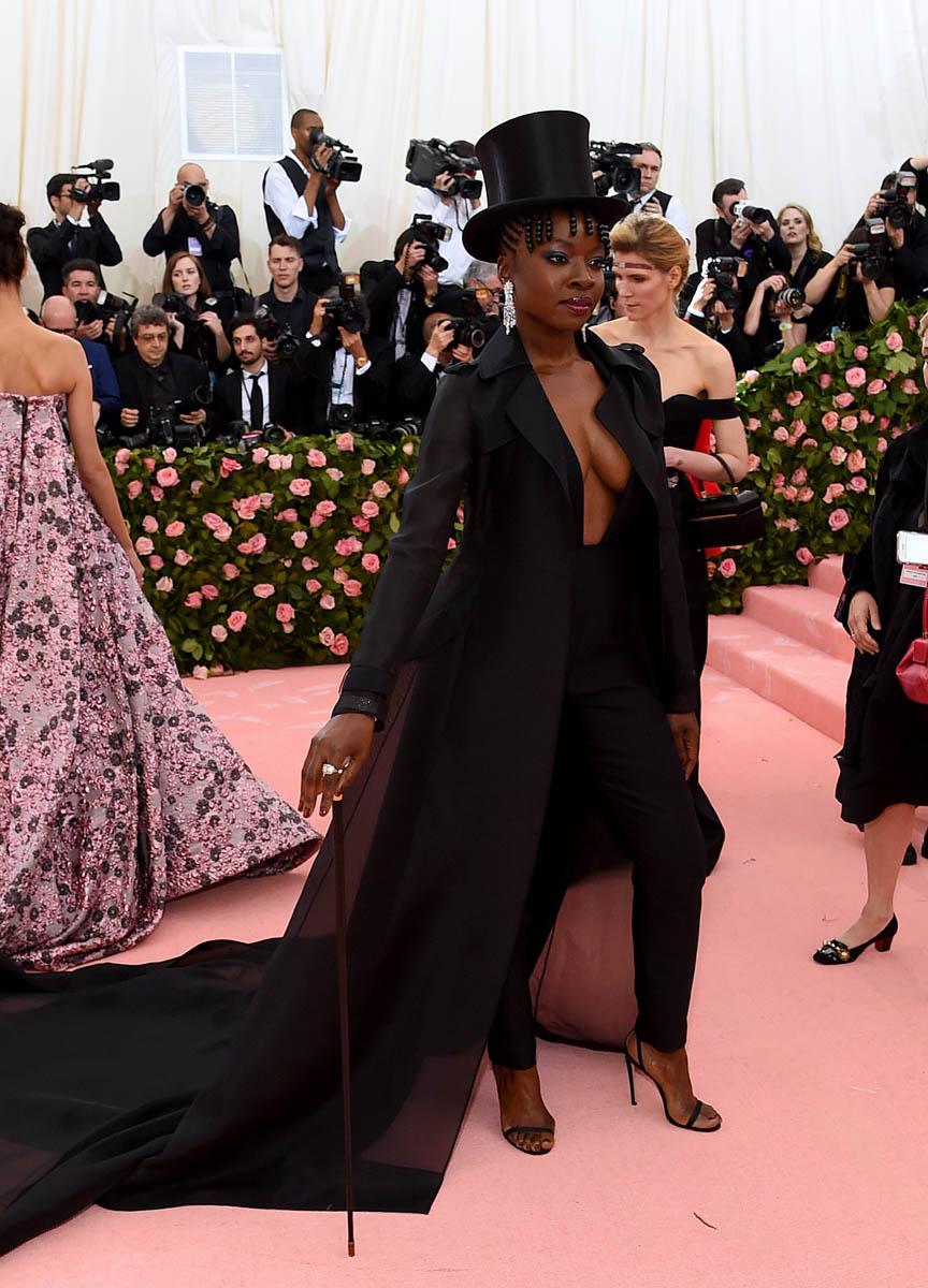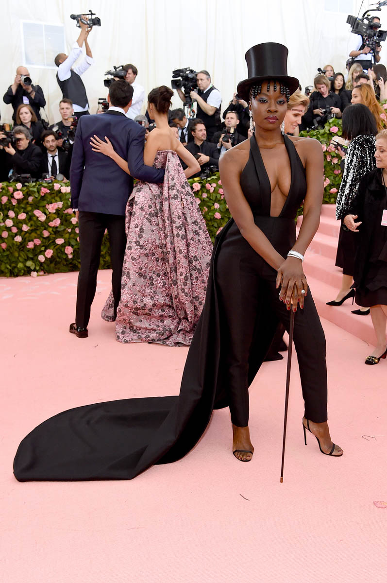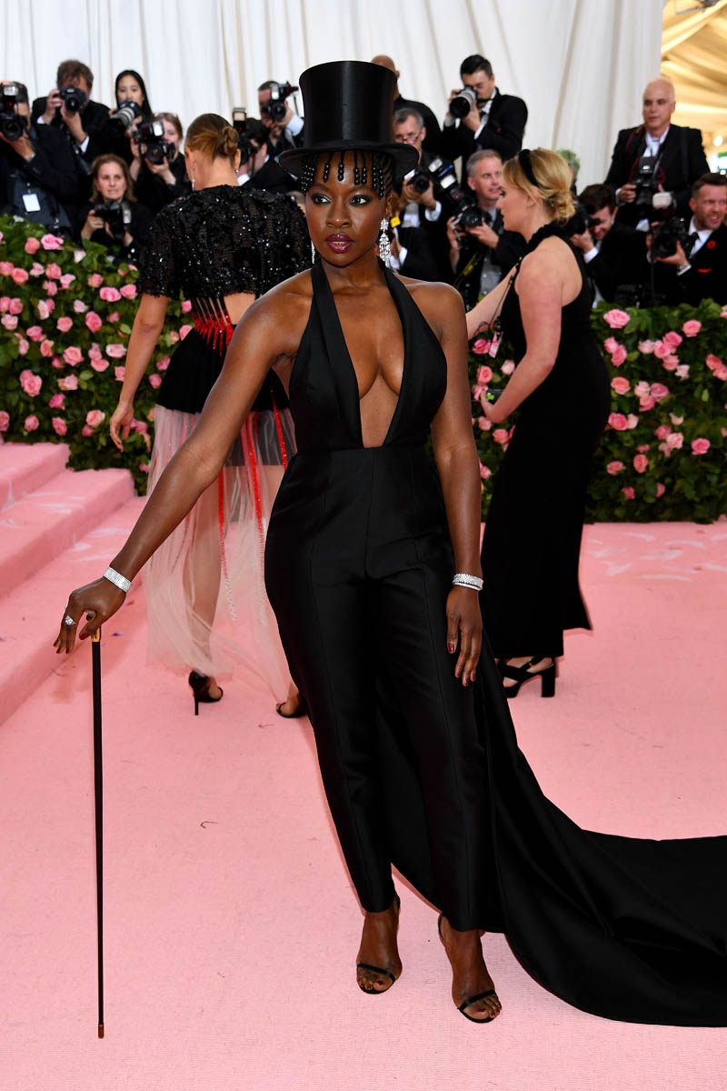 Honorable mention in the hat game also goes to Danai Gurira, whose top hat and beaded bangs are deceptively sweet and simple. Unfortunately the rest of the outfit is only ordinary by comparison (I said ‘by comparison’! The bar is high af this year!) but people are going to be using that head and shoulders shot of her for a long, long time to come. If only there was a way to get her saucy walking stick into the frame, pushing the brim of the hat up rakishly like she was Mr. Peanut or something.