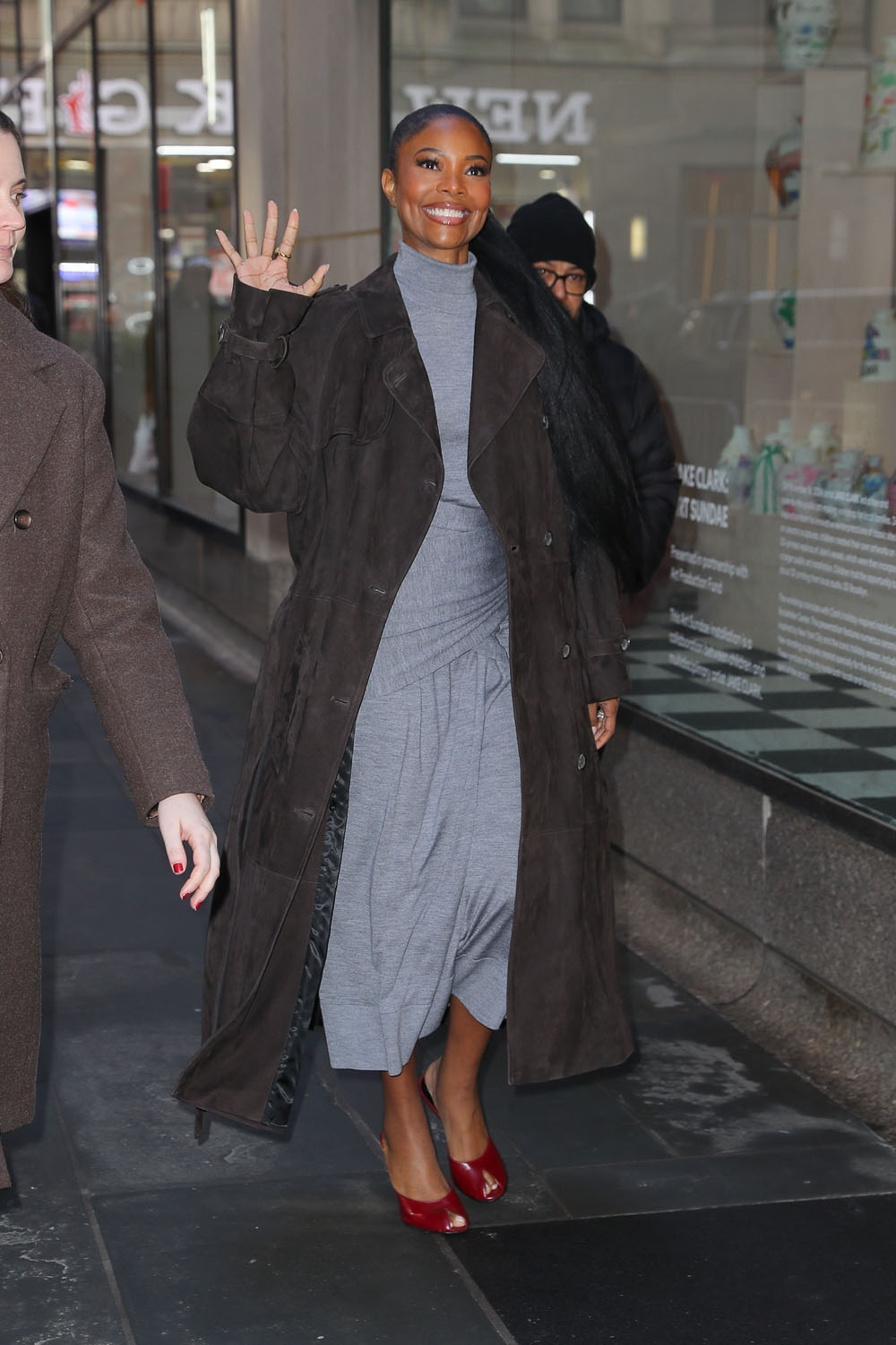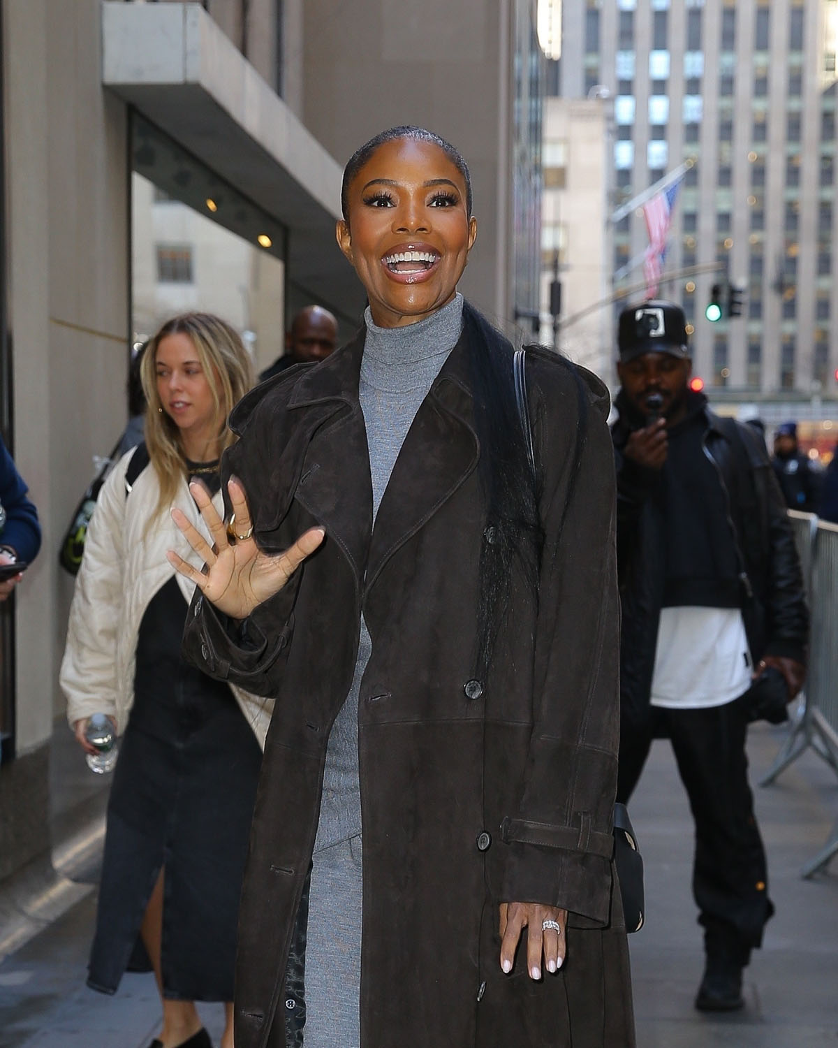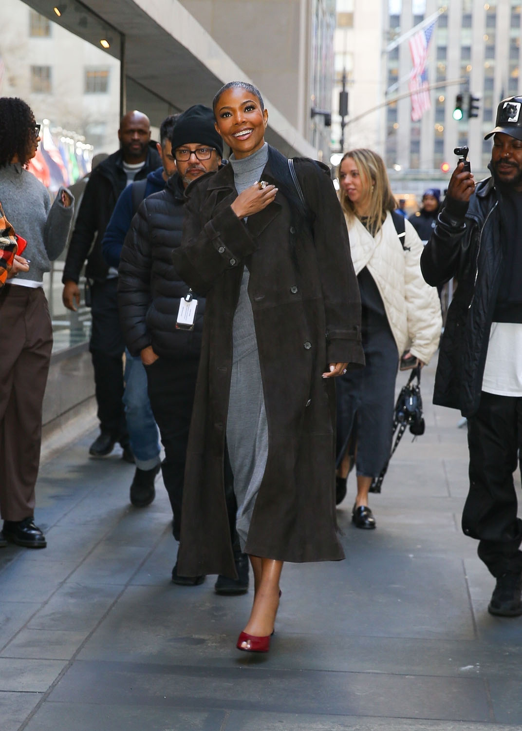Gabrielle, though, remains professional, busy, and unbothered. She has a movie to promote. Here she is in New York, glowing, while making the rounds this morning. Riff Raff premiered at TIFF last September and it’s a stacked cast. In addition to Gabrielle, there’s Bill Murray, Pete Davidson, Ed Harris, Lewis Pullman, and Jennifer Coolidge. It opens this Friday.