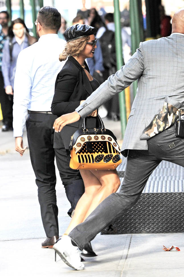 Here are some new shots of Beyoncé today and yesterday in New York. She takes Formation to Detroit tonight and then it's a two week break before the tour heads to Europe until early August. And then it's a month off between Europe and the final leg in America. Perfect time to get on that yacht. Has she even had any yacht time this year yet?