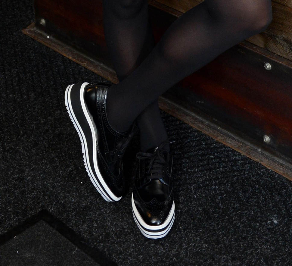 I love the turtleneck under a shift look. I love black and white checks. I f-cking love these kicks. They remind me of Stella McCartney’s platform Oxfords which I would have bought if I wasn’t on a feng shui shoe ban (it ends in 2 weeks) only they don’t have that layer of cork. These are way better. My favourite Sundance look so far.