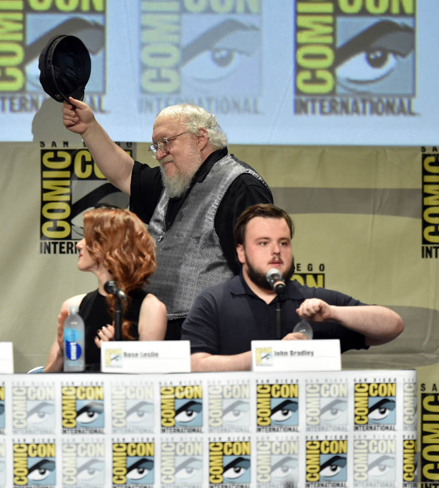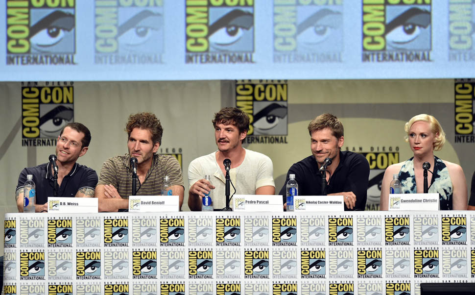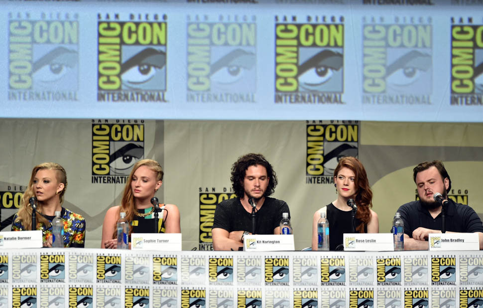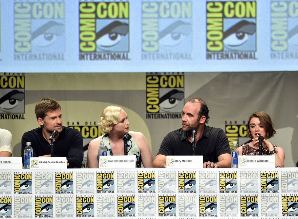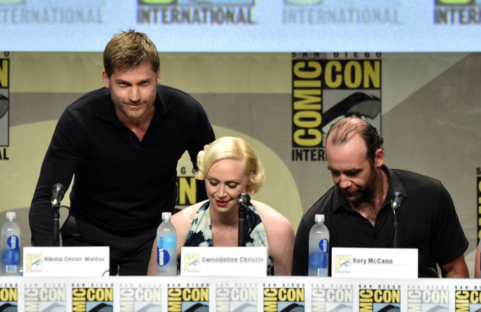 As expected, the Game Of Thrones panel at Comic-Con this weekend was a big deal. And it was a chance to say goodbye to a couple of our favourite characters. Also a look-ahead to Season 5. So here are Gidget and Oberyn Martell alongside Jon Snow and Arya Stark and the Hound and Brienne of Tarth and Jaime Lannister who, for me at least, is quickly becoming the Pacey Witter of this show. WHAT?