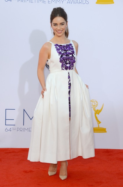 And just as I was moaning about the lack of couture and proper styling at the Emmys, here comes the khaleesi in Chanel Resort (from this collection presented in May at Versailles). I wish she’d chosen a different pair of shoes (the nude seems so unimaginative) but come on, this is so superior to almost everyone on network television (oh is that what we’re doing here?) you’d think she and Julie Bowen were at different events.