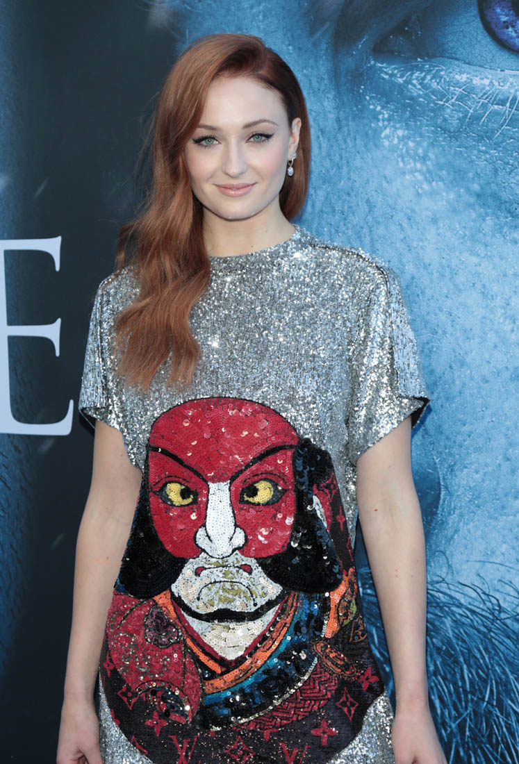 In the meantime, Winter is three nights away. And the Game Of Thrones season 7 premiere happened last night in LA. Rose Leslie showed up with Kit Harington. Sophie Turner wore a dress I was NOT expecting. I was expecting tight and sheer and cutouts. Instead she went with Louis Vuitton, a sequined oversized t-shirt from the Kansai Yamamoto resort 2018 collection – I LOVE it. Sophie’s been wearing a LOT of LV lately. But I don’t remember hearing that she’s become an official brand ambassador like Michelle Williams and Alicia Vikander. If I’m her manager I’m like, don’t give it away for free, girl.