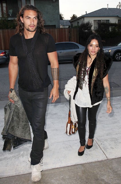 Jason Momoa, one of the tallest cast members, if not the tallest, of the Game of Thrones showed up with his girlfriend Lisa Bonet at a fundraiser in Venice, CA a few days ago. The shortest member of the Game of Thrones cast spent the Memorial Day weekend in New York with his girlfriend and his dog. Here’s Peter Dinklage with a bandana holding back his hair in Manhattan yesterday.