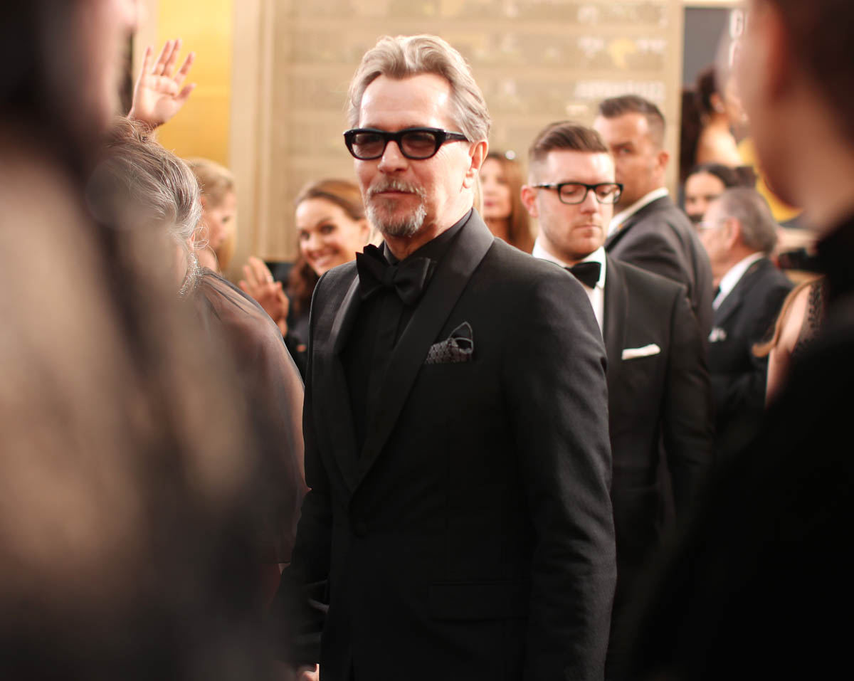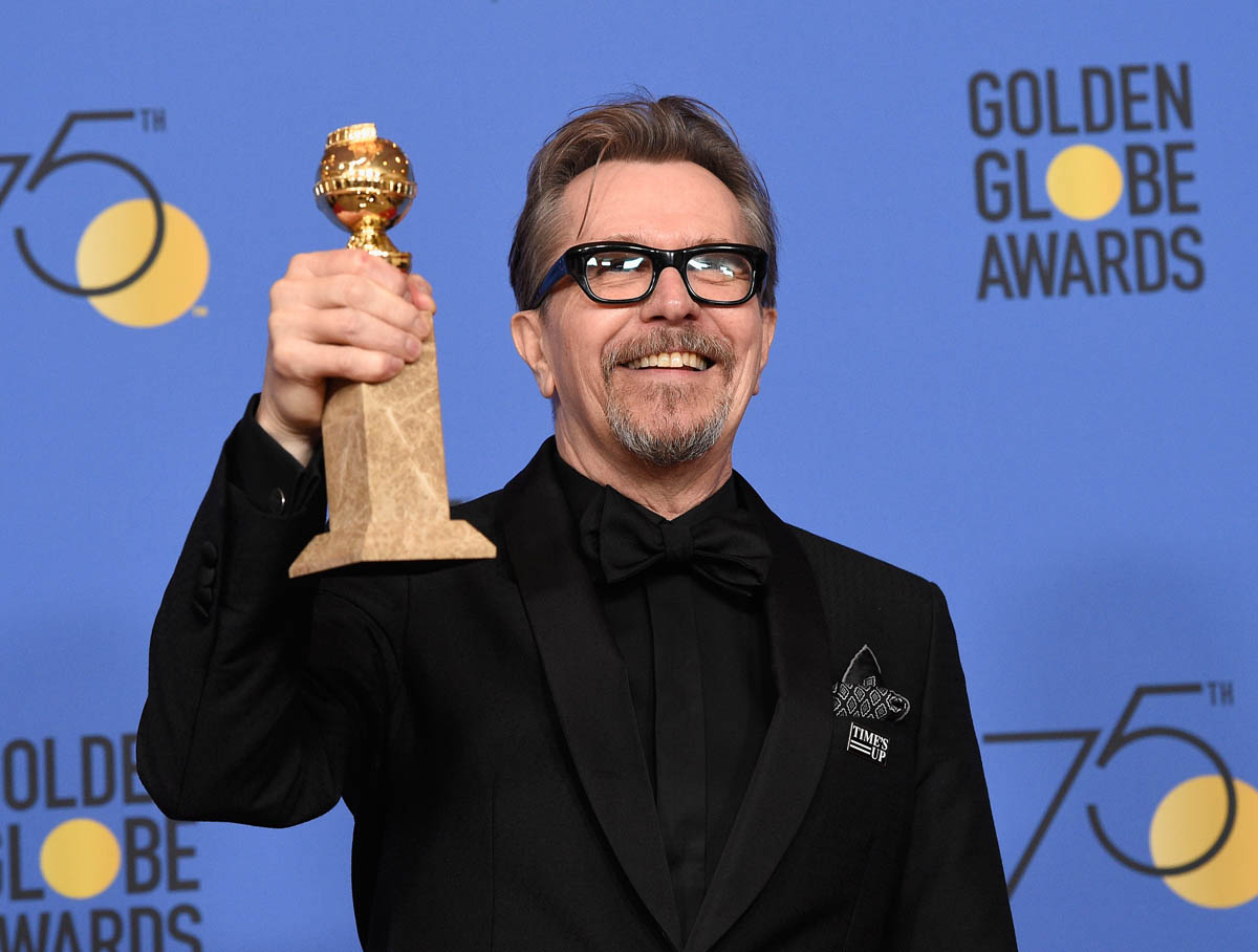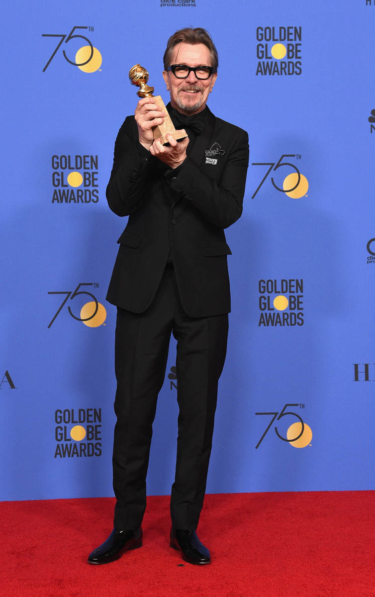 Timing was on Casey Affleck’s side. Because six months later, The New York Times and The New Yorker blew open the Harvey Weinstein story and the Hollywood Predator Advent Calendar decided to show its ass every single day. And now we have another Best Actor Oscar frontrunner with some sh-t on his card. (Two, actually, but we’ll get to James Franco later.) Gary Oldman won the Golden Globe for Best Actor in a Drama last night for his performance as Winston Churchill in Darkest Hour. Gary wants this bad. Gary is hustling. Gary is playing the game. And Gary is not unpopular in Hollywood. In 2012 at the Palm Springs Film Festival, I watched Jessica Chastain fall to pieces when she met him, her favourite actor. Here’s what Hugh Jackman tweeted a few days ago: