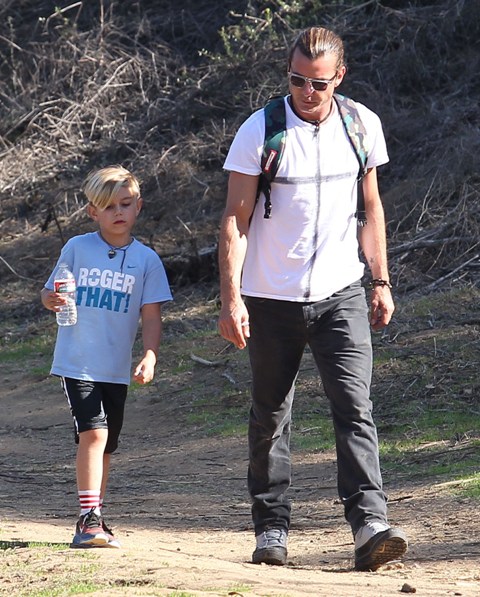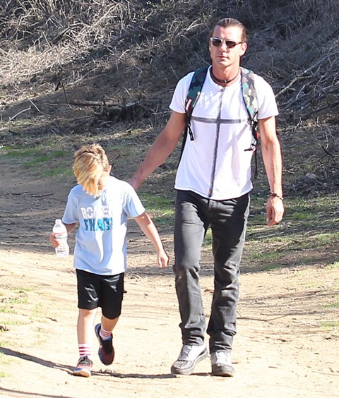 Gavin Rossdale took his boys on a hike with the nanny the other day. The nanny is very attractive. And has bleach blonde hair like Gwen Stefani. Which...not a problem on its own.
