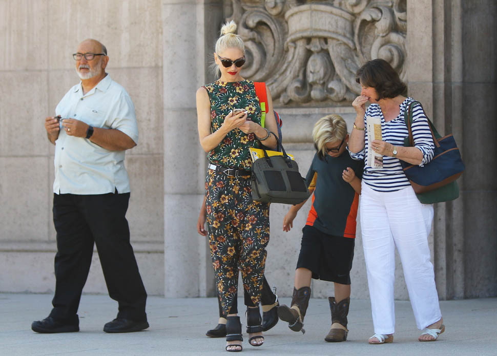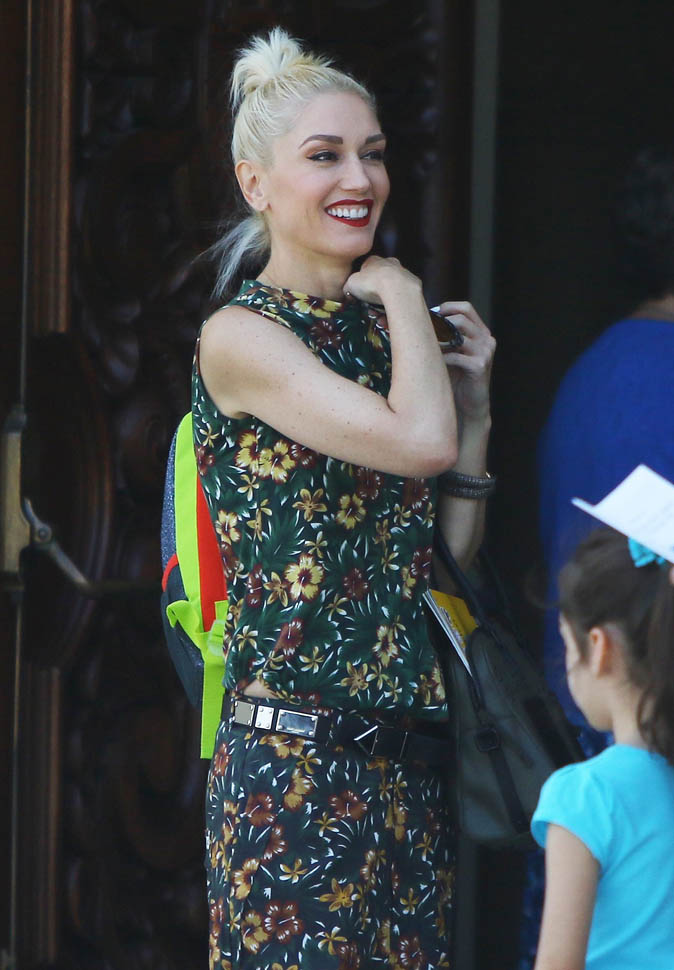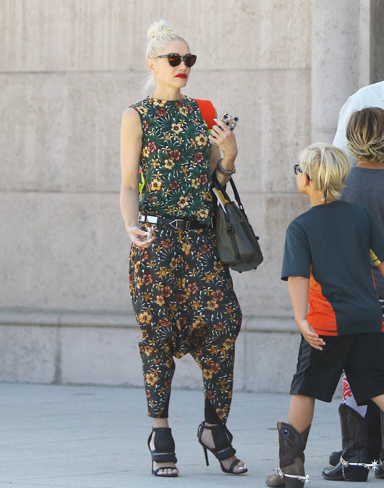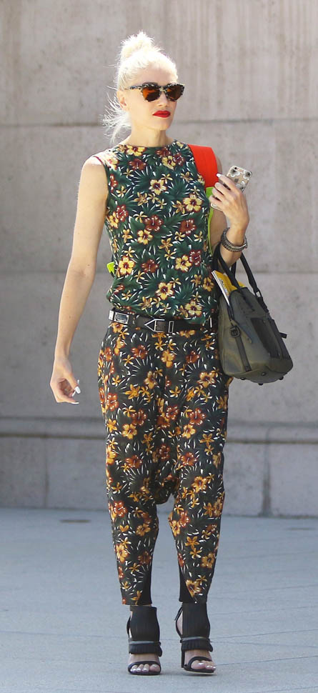 Also attached – Gwen Stefani in a belted drop crotch with flowers, maybe one of the best outfits I’ve seen her wear all year. And no ring. Go get it. Go get better.