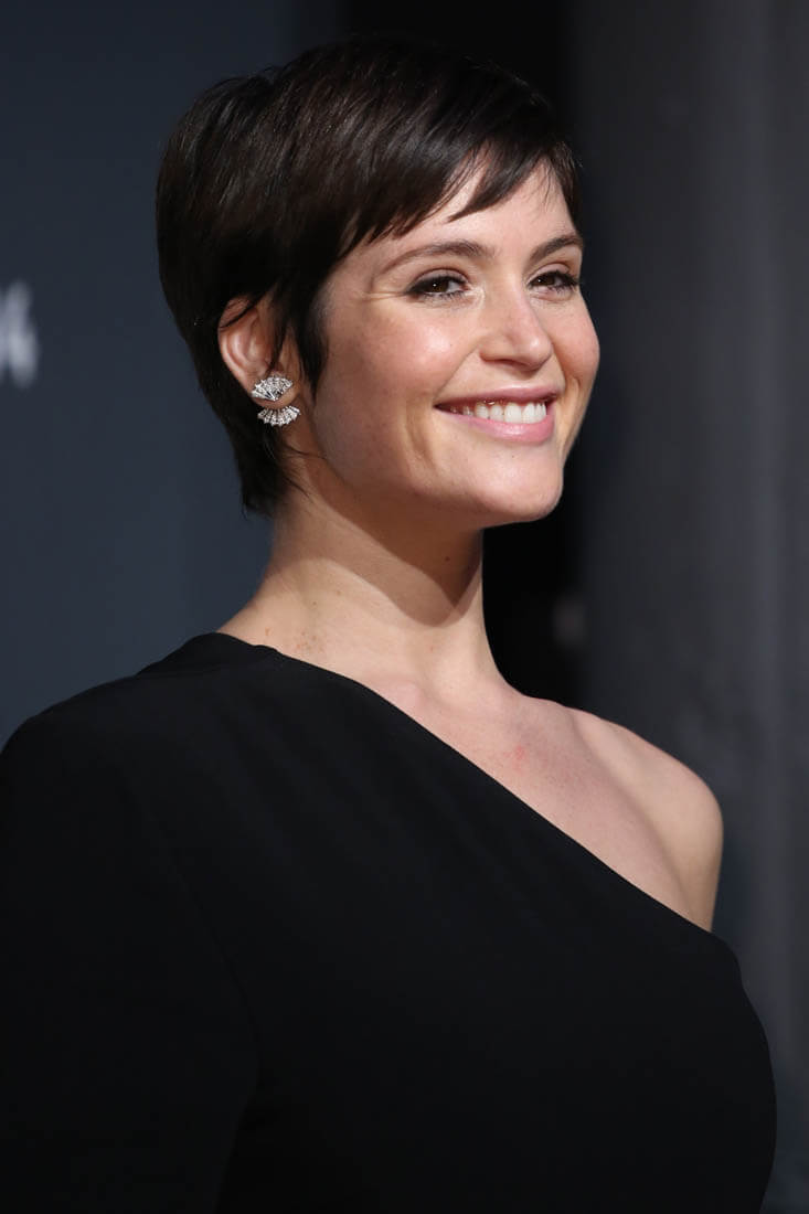 Gemma Arterton looks so good with her hair this short, especially in this one-shoulder drapey black dress that’s almost cut like a jumpsuit. I love it on her.