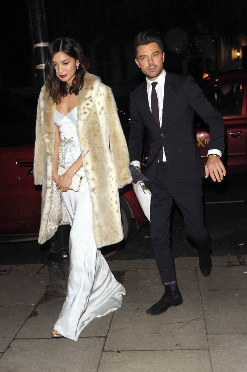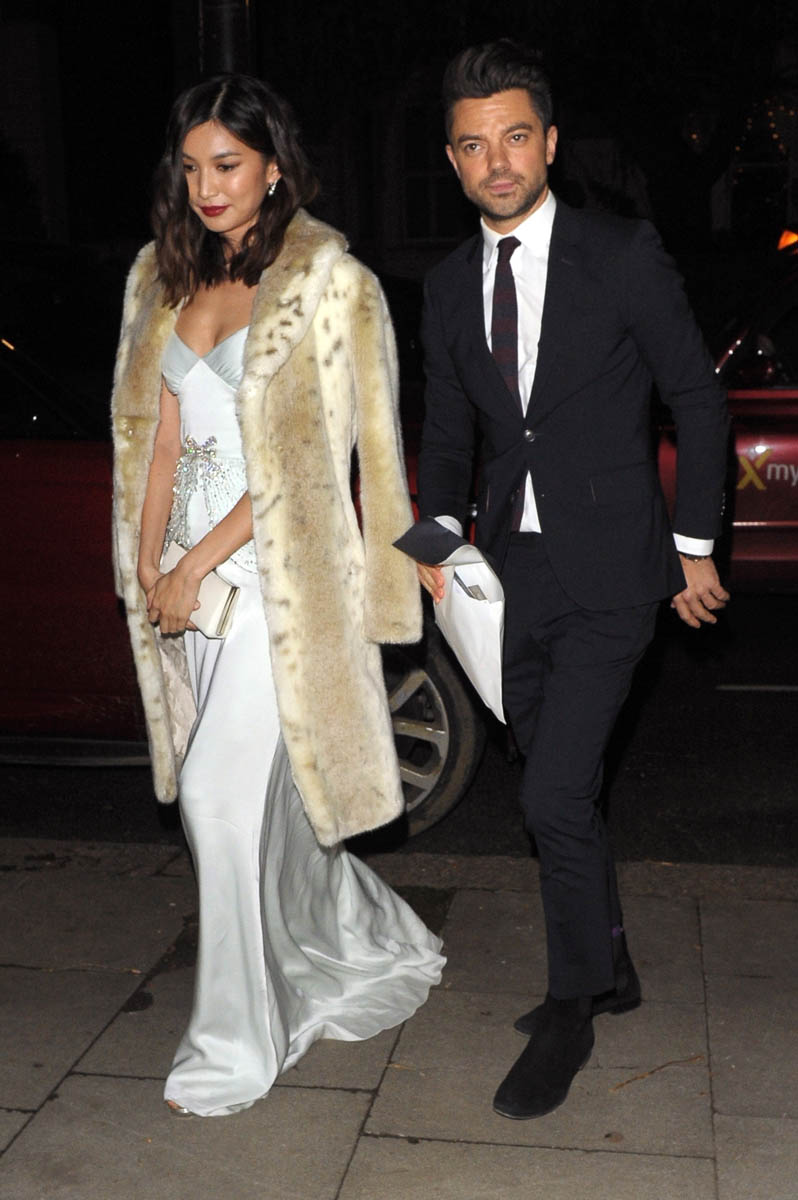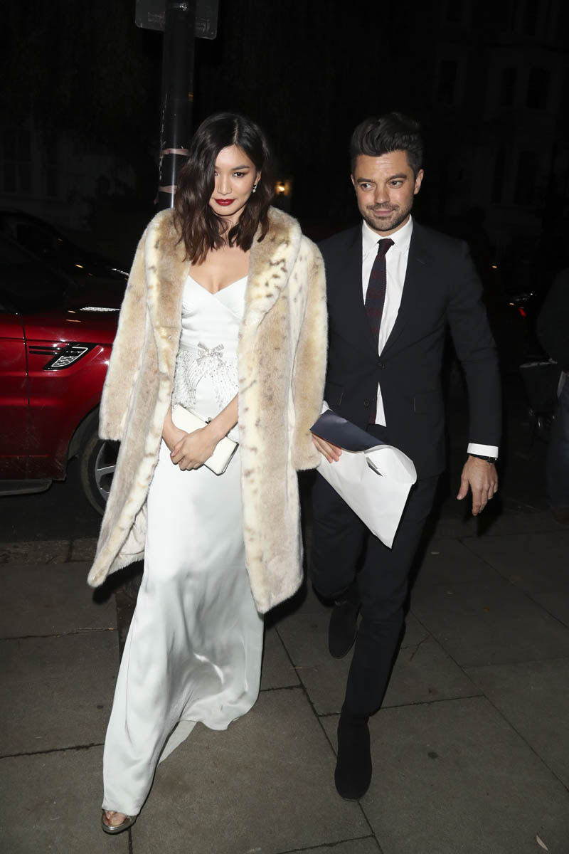 The premiere for Mary, Queen of Scots happened last night in Leicester Square. Afterwards Gemma was seen at an after-party for the British Fashion Awards, joined by Dominic Cooper. Apparently it’s the first major event they’ve been seen at together as a couple. Apparently they’re living together now, like she moved in in September. It was only revealed that they were dating in late summer. So, yeah, if it’s that serious, of course they’re going places together, also no-big-dealing it.