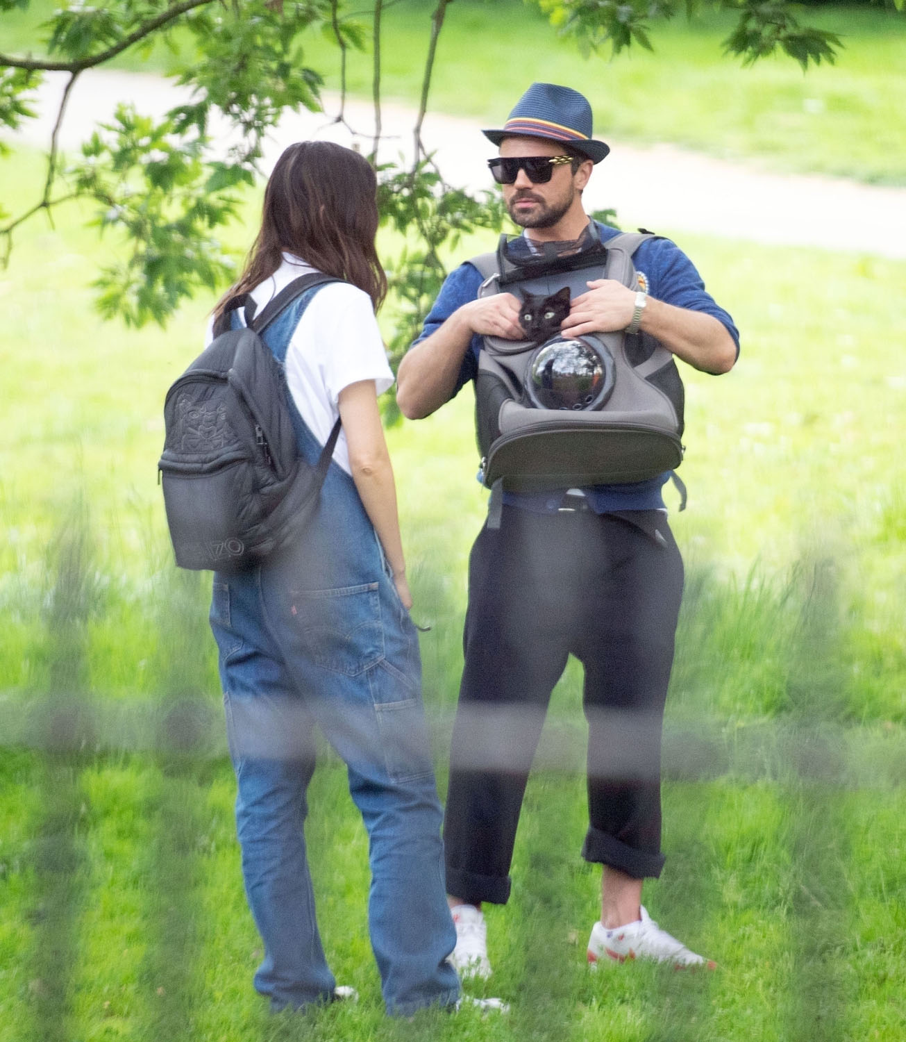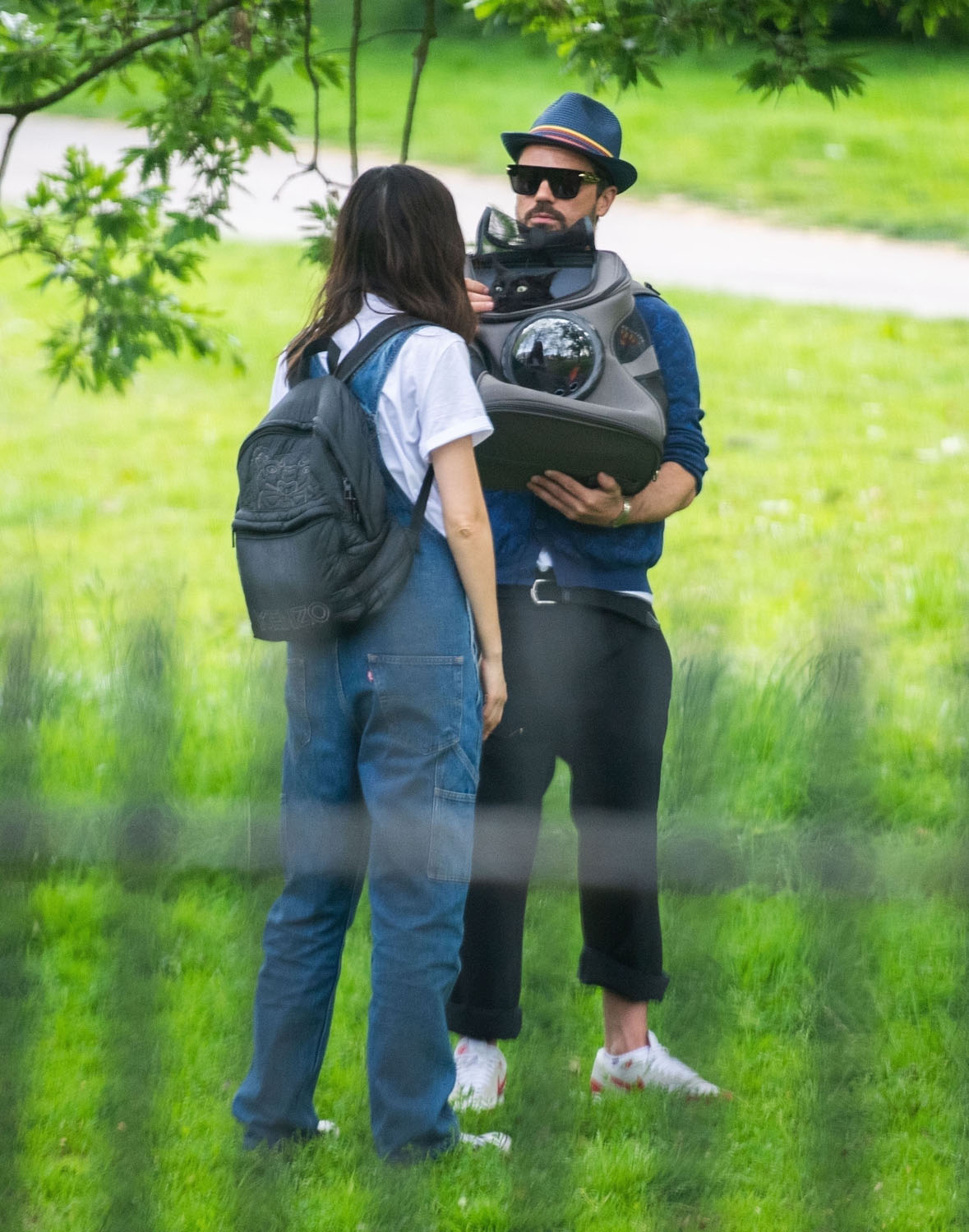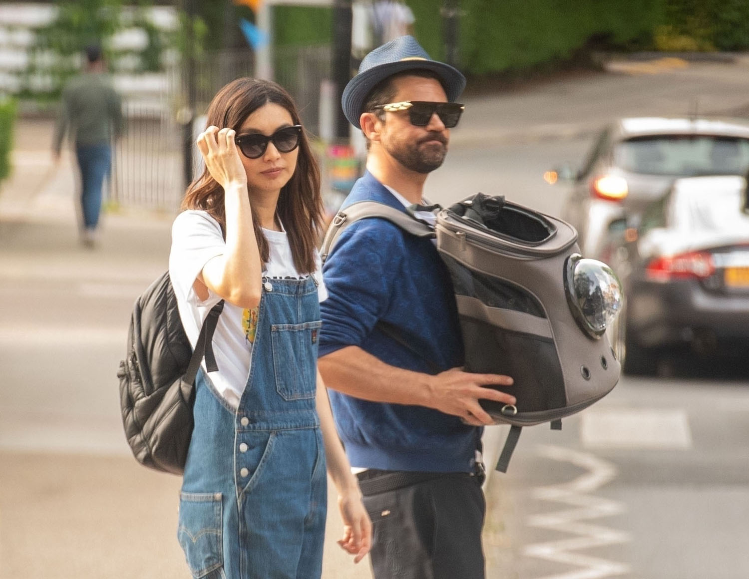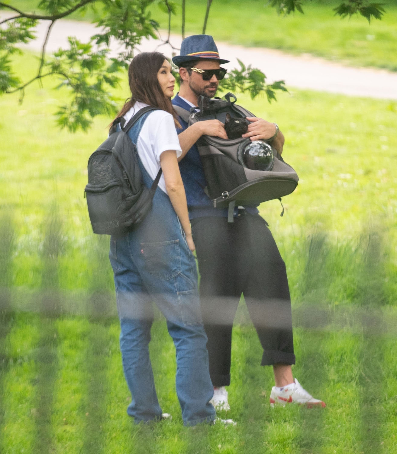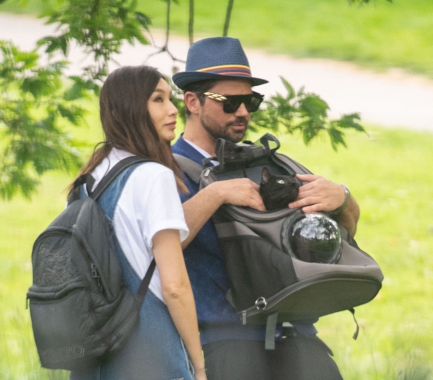 Today in Celebrity Cat News, Mr. Kitty, the rescue cat belonging to Dominic Cooper and Gemma Chan, was seen traveling comfortably in a bubble backpack the other day in London. Mr. Kitty, proclaimed by his human servant Gemma to be “the most affectionate cat in the world!”, enjoyed fresh air and a casual stroll while safely ensconced inside his travel bag. No word on whether or not Mr. Kitty enjoyed the stroll, or if presumptuous humans merely assumed he would, but his dutiful servants were seen doting on him and delivering head pats, and even scritches. A good day was probably had by all.