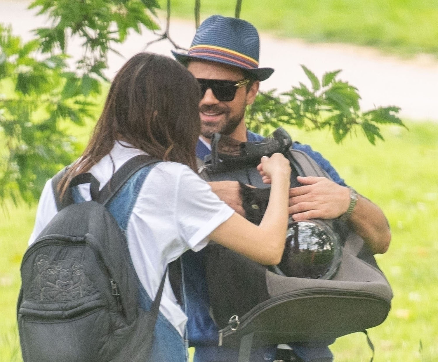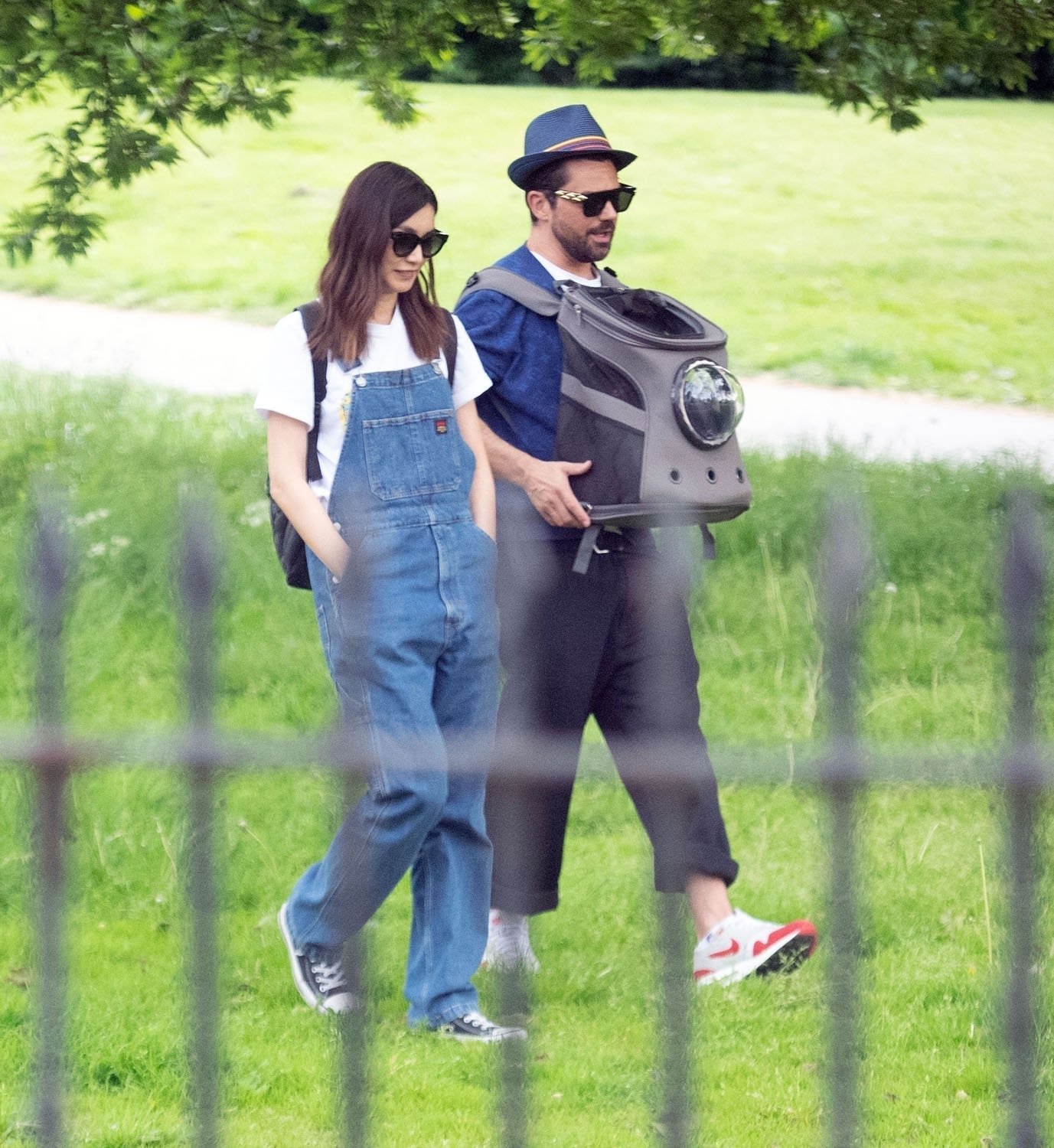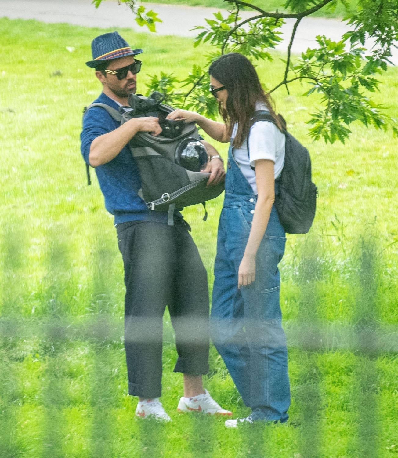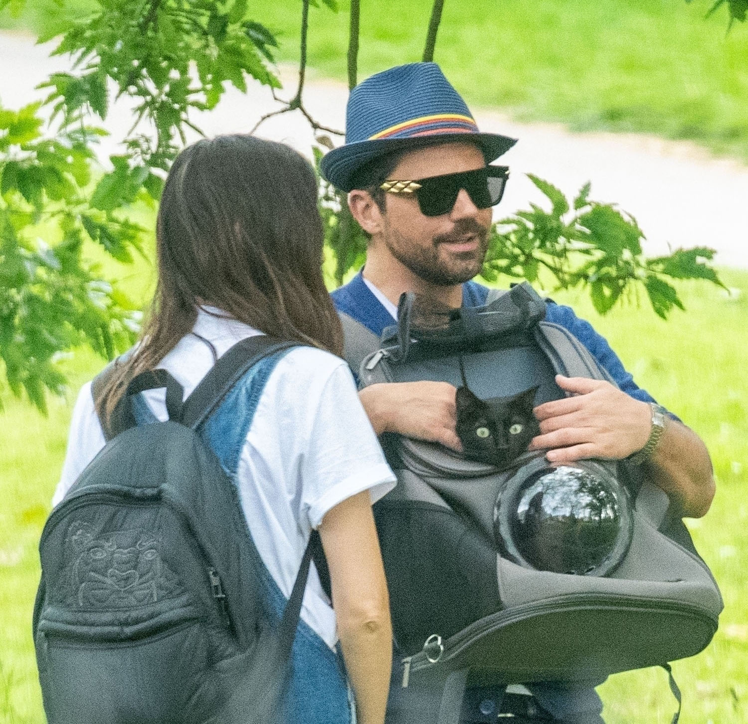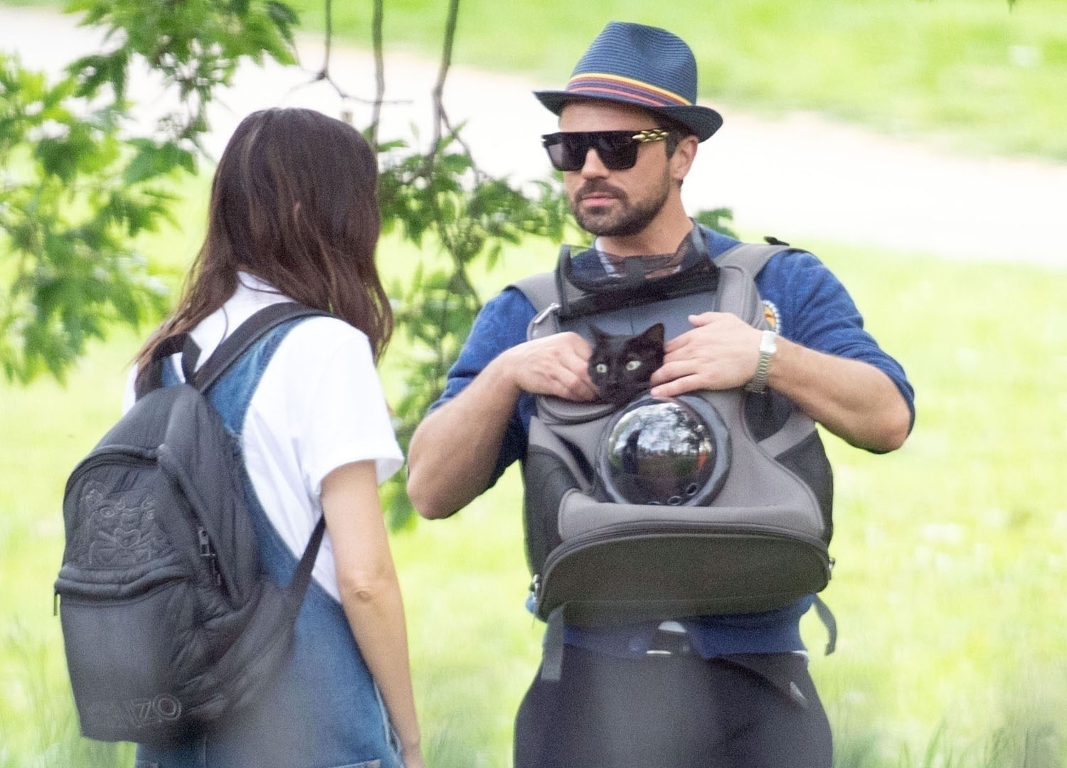 Today in Celebrity Cat News, Mr. Kitty, the rescue cat belonging to Dominic Cooper and Gemma Chan, was seen traveling comfortably in a bubble backpack the other day in London. Mr. Kitty, proclaimed by his human servant Gemma to be “the most affectionate cat in the world!”, enjoyed fresh air and a casual stroll while safely ensconced inside his travel bag. No word on whether or not Mr. Kitty enjoyed the stroll, or if presumptuous humans merely assumed he would, but his dutiful servants were seen doting on him and delivering head pats, and even scritches. A good day was probably had by all.