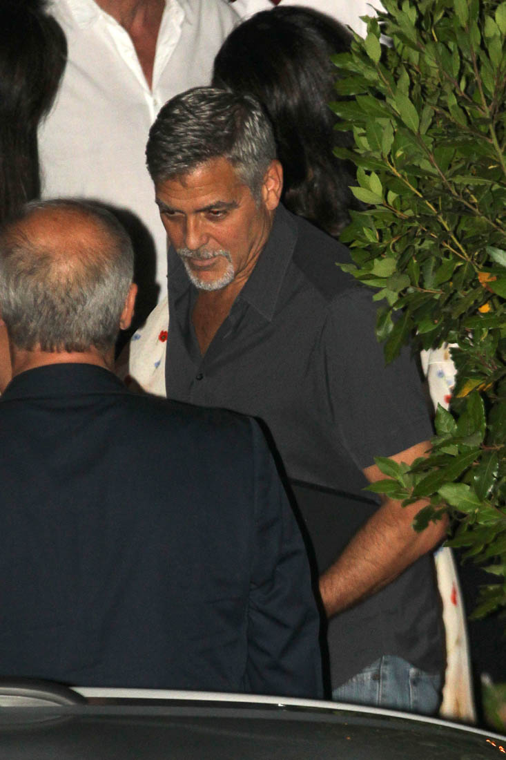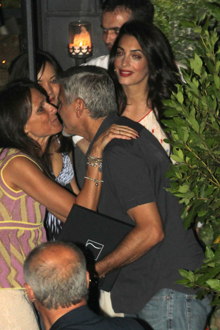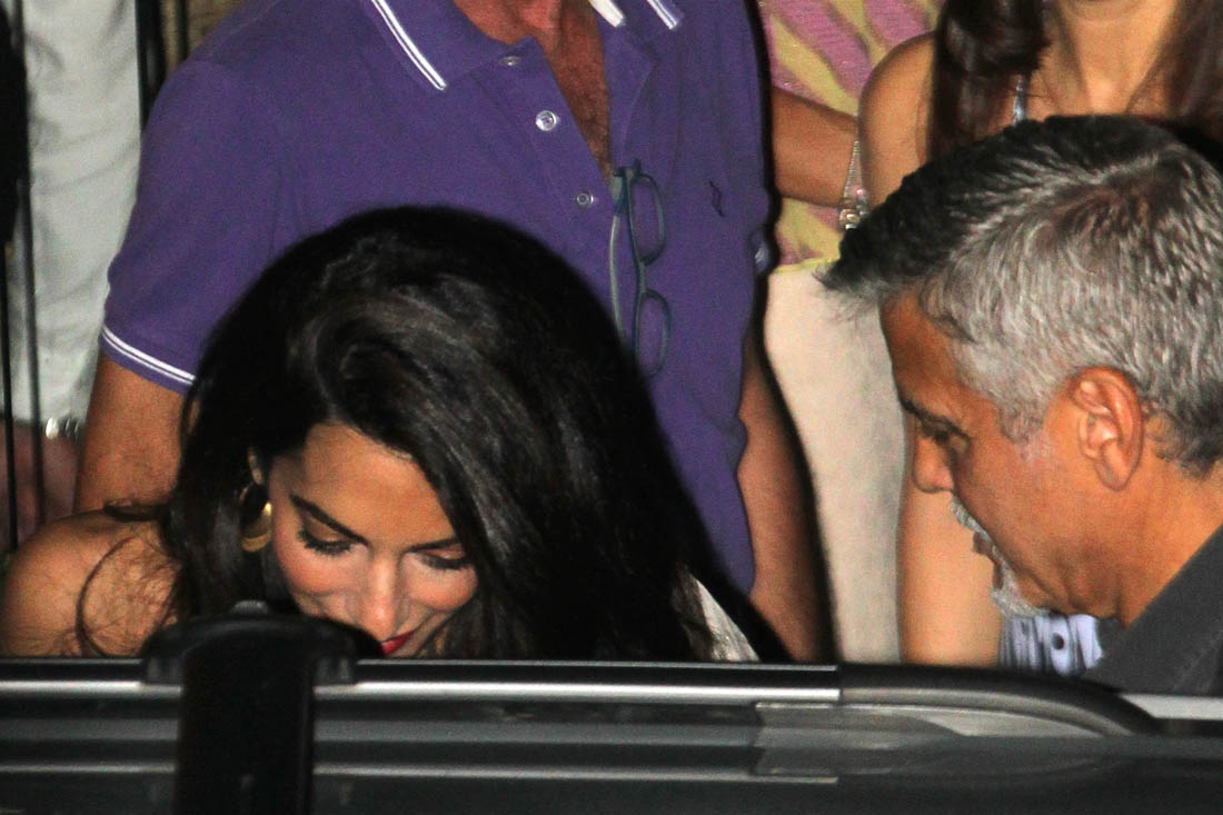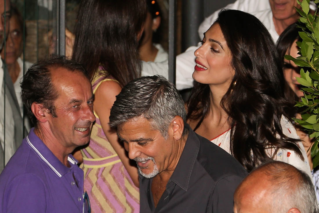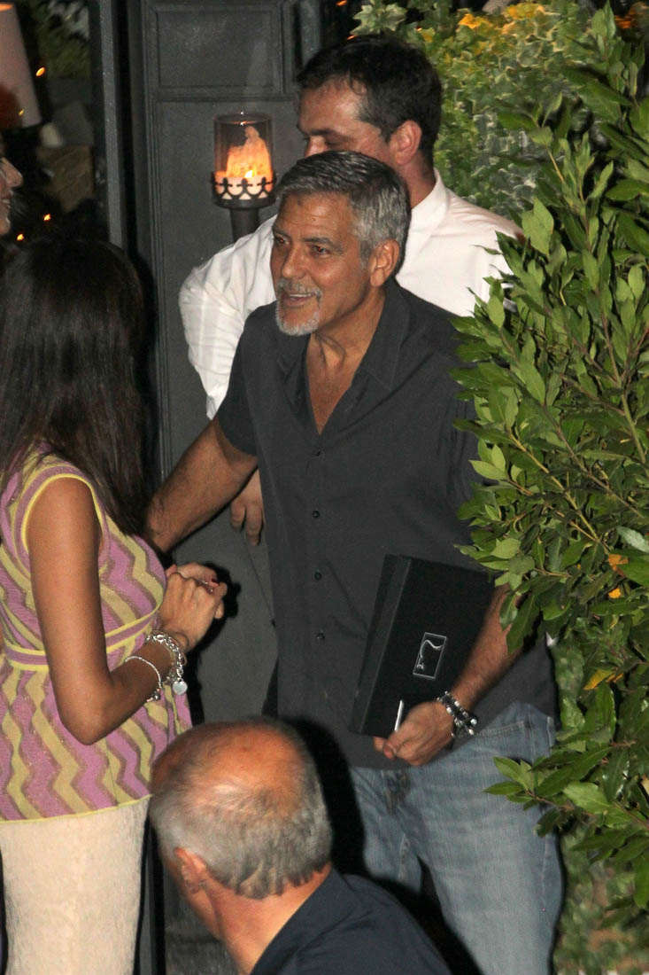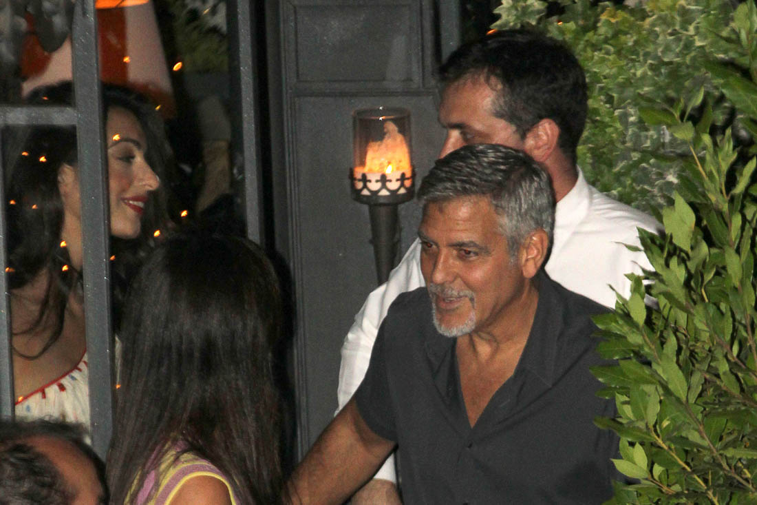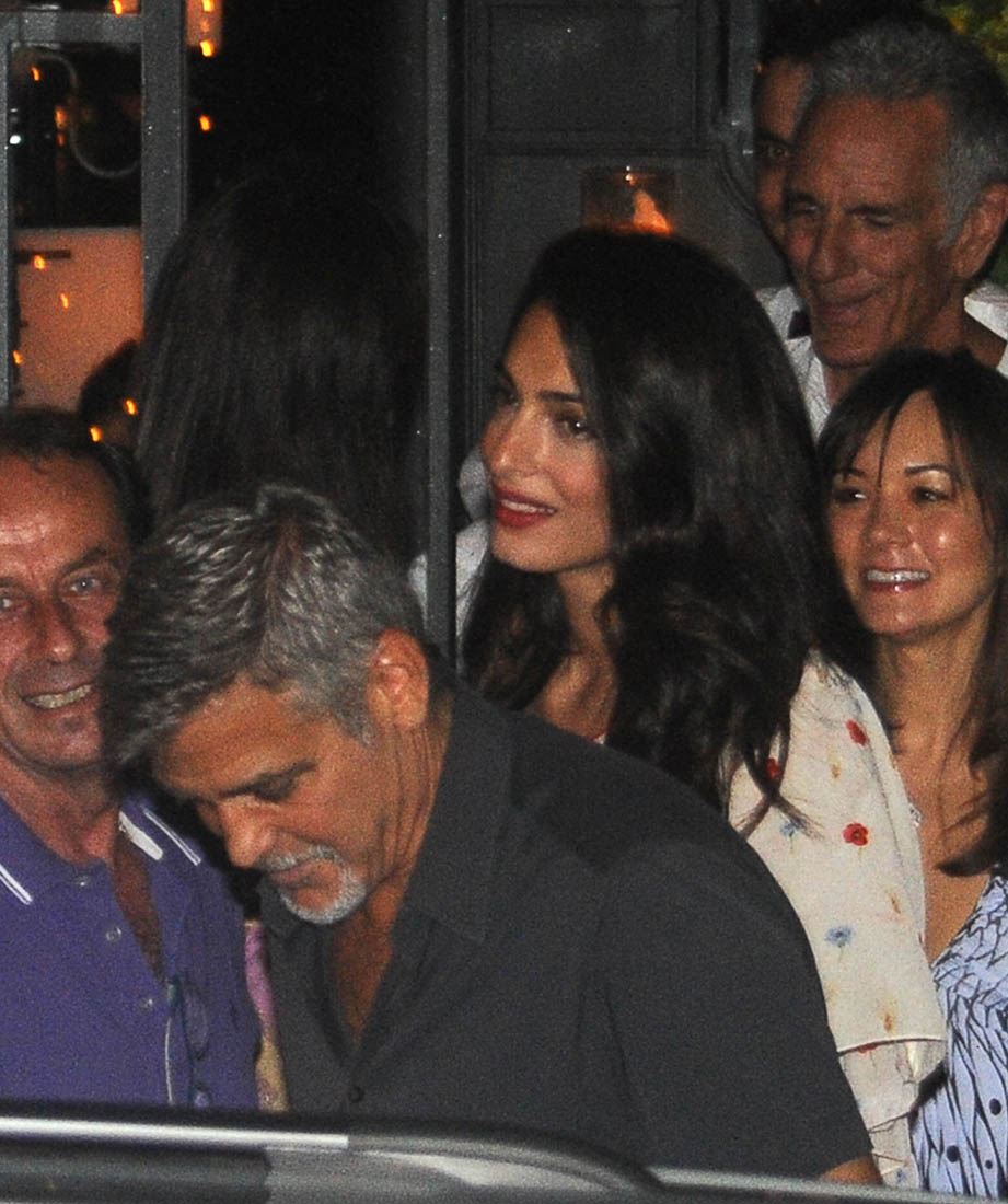 Last week I posted photos of Amal and George Clooney arriving via private jet in Italy, on their way to Lake Como where they always spend the summer. Last night they left the twins at the villa to go out for dinner with friends at one of their favourite restaurants where we’ve seen them in years past. In fact, if you didn’t know that these shots were new, you might assume they were from any other year they’ve been there, and that it was, as usual, a late night full of drinking and carousing. This, of course, is not just any other year. Ella and Alexander are just over a month old. So, according to locals, the Clooneys left earlier than they usually do when they’re out in Como, presumably to get back home to see – or feed? – the babies.