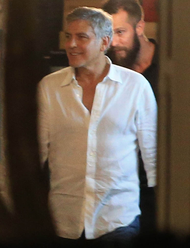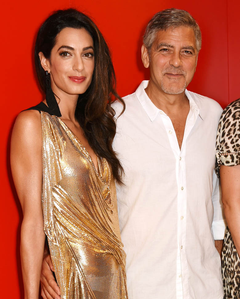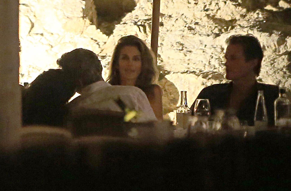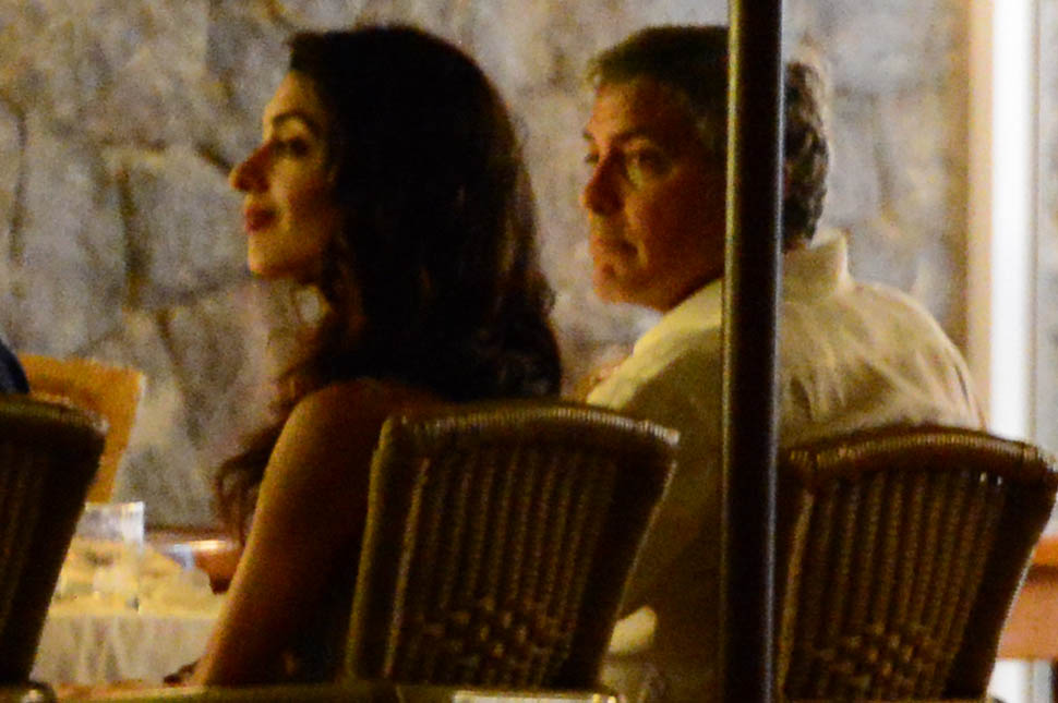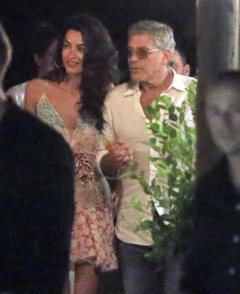 On Saturday night, Amal, George, Cindy, and Rande went out for dinner. Amal decided not to go with a blowout and wore her hair much wavier than we’ve ever seen it, in a really cute Stella McCartney dress. Then, on Sunday, she went gold disco for club night. You think there was foam? I would f-cking love to see George Clooney at a foam party. Instead I’m seeing pictures of him nuzzling noses with his wife with a photographer 3 feet away. Well, George Clooney knows what makes a great photo opportunity. And Casamigos needs every club in Ibiza to be ordering their brand by the boatload. This is why I’m not sure about those rumours about him running for office. Unless of course he’s using booze to raise money for a political campaign. Totally Boardwalk Empire.