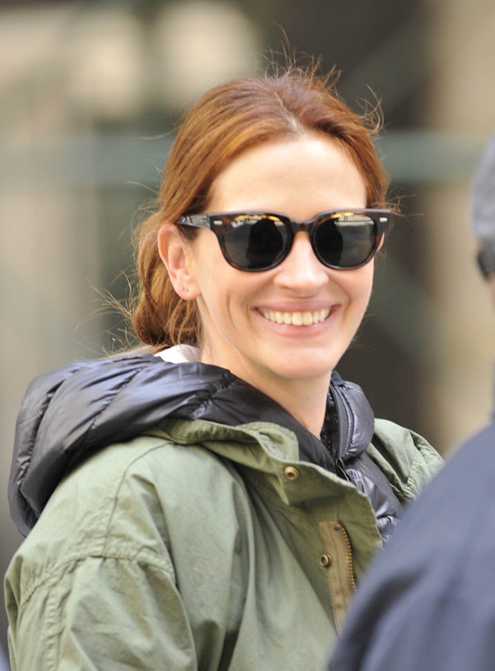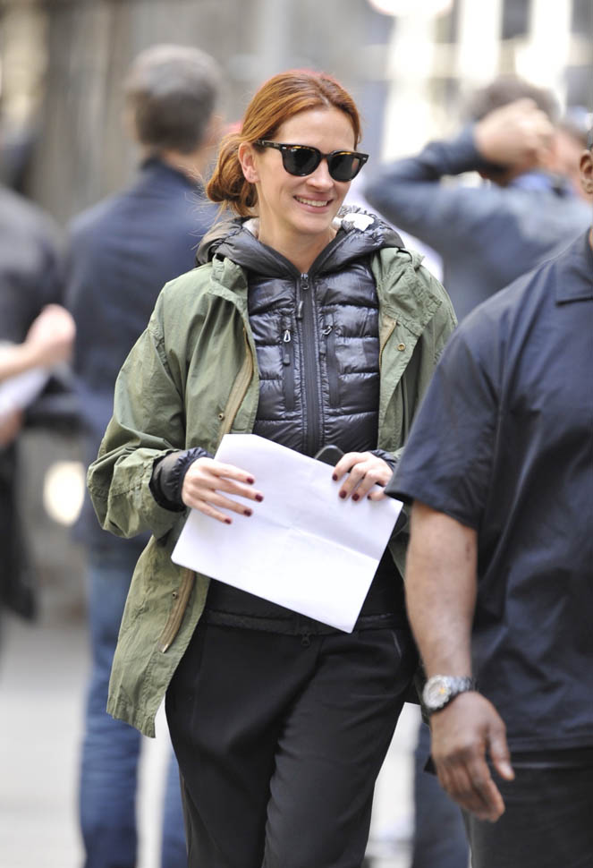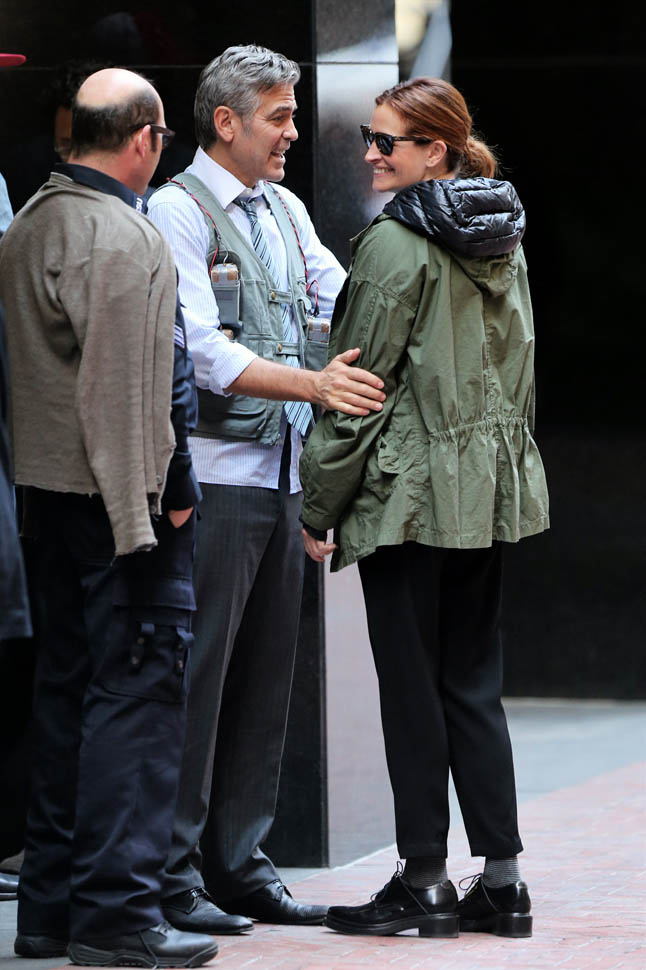 Oh stop being so cynical. Definitely don’t be cynical around Julia Roberts. Because if you fear only one person, it’s her. And she would blast your ass for talking sh-t about her friend George and his lovely wife Amal. Speaking of Julia, she was around too and she and George were hanging out on set as well except not during Amal’s visit so…we’re still waiting on that photo: Amal Clooney and Julia Roberts. It’s almost like they know how much that one would be worth and they’re saving it.