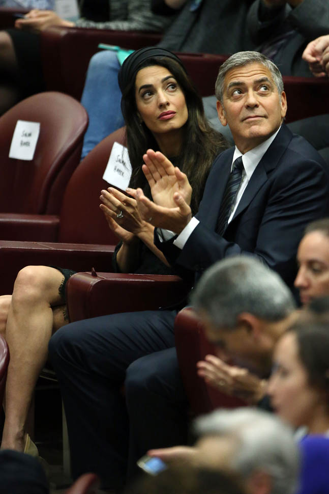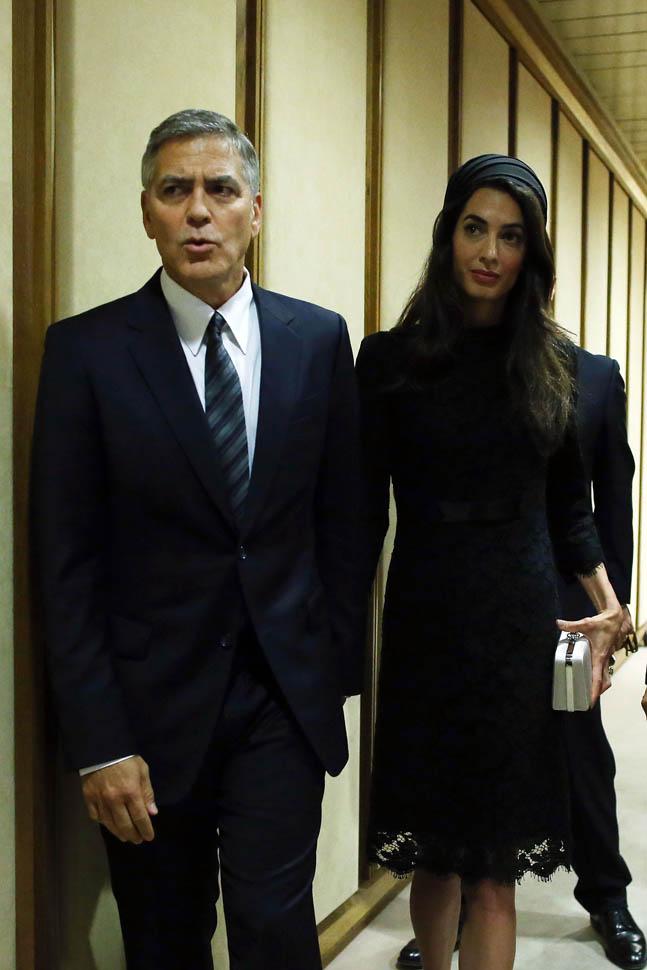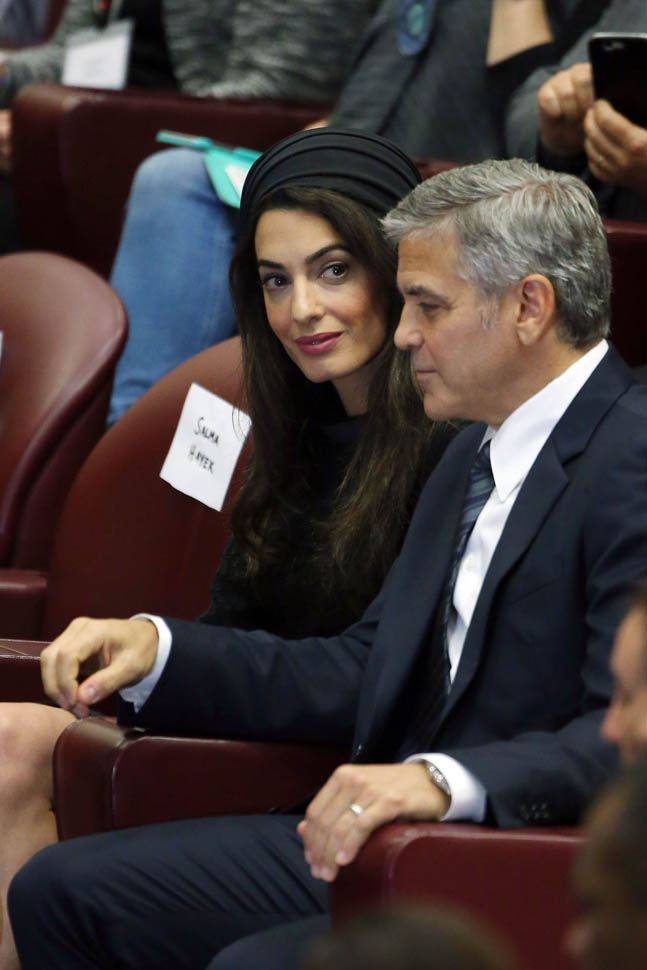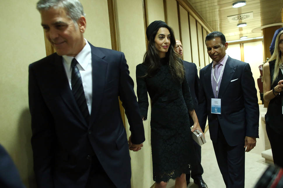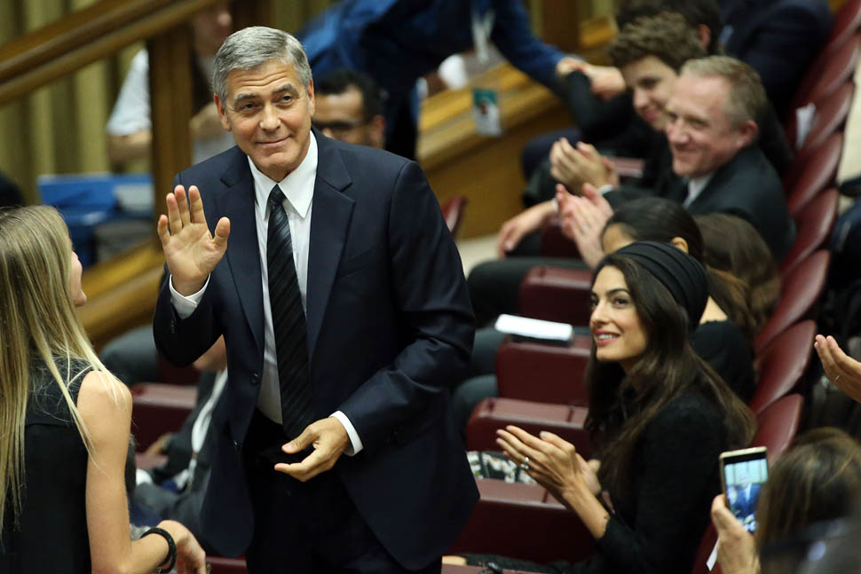 The couple, who attended the pontiff's Un Muro o Un Ponte Seminary at Paul VI Hall, were also on hand so that George could be awarded a medal for his work with Francis' Scholas Occurrentes, an International Organization of Pontifical Right that connects technology with arts and sports, according to its website.