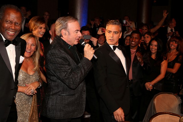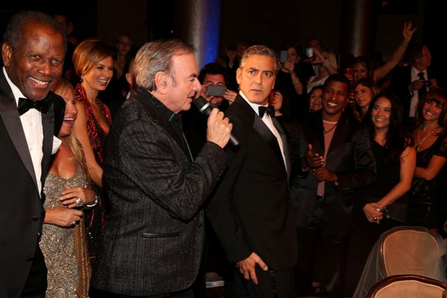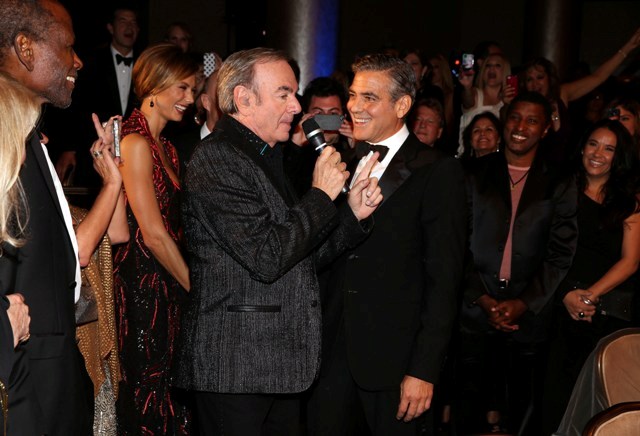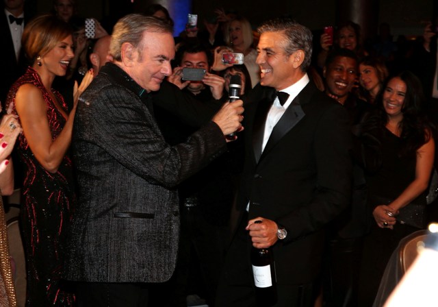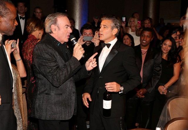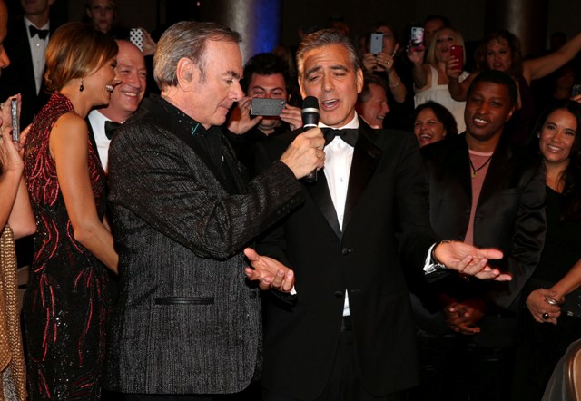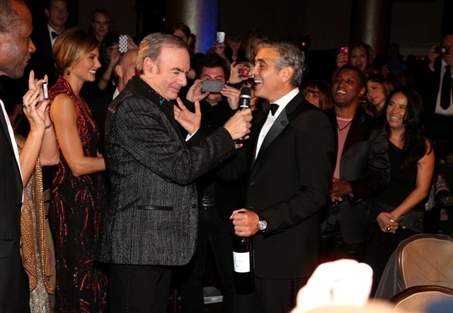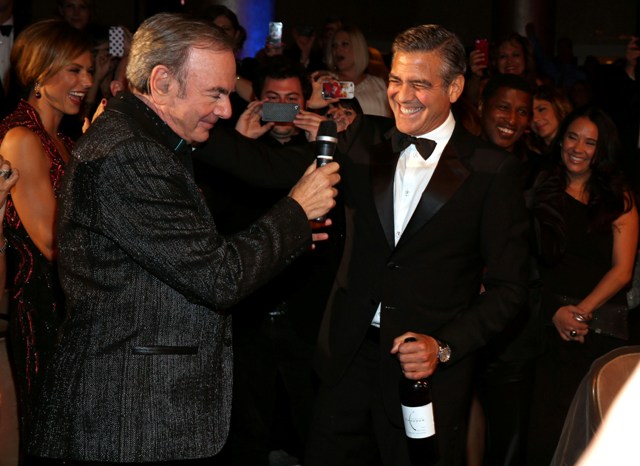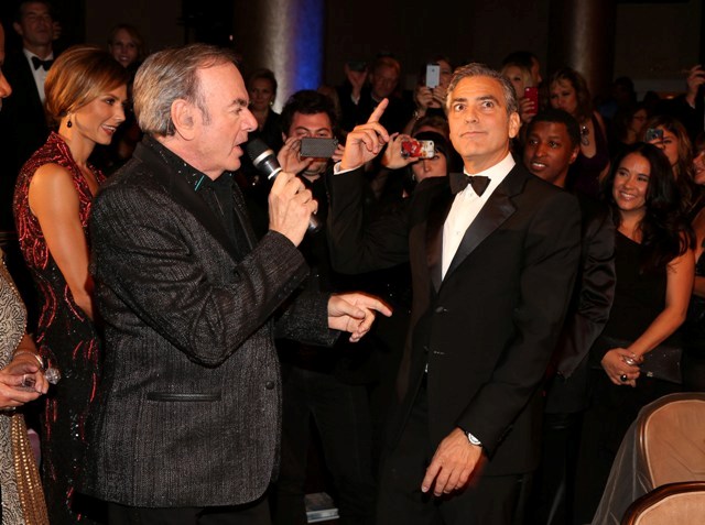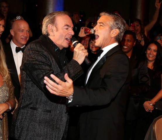 She is good this girl, she really is. He’s rewarding her for being so good, not wanting marriage or babies and all that sh-t he doesn’t want. And he’s rewarding her so... happily too, right? Check him out, not being sulky or pouty or behaving like this is beneath him, joking around with Neil Diamond. That’s the kind of date you want -- a guy who participates and WANTS to enjoy himself even though it’s not his usual crowd.