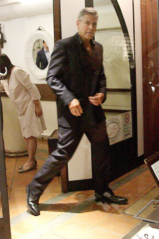 Amal Alamuddin and George Clooney were photographed after dinner in Lake Como last night with his parents. I think they’ve been there at least a week. Her ma was there late last month too. And they keep saying that Como is where they’re getting married. So are they all coming back in September to make it official? Or do they just stay there the whole time to make it an extra, extra long summer holiday?