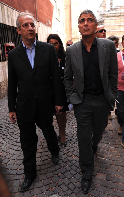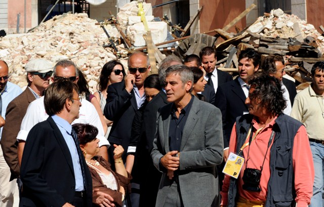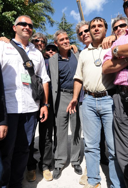 The G8 summit is happening now in L’Aquila, Italy and after spending his vacation at Lake Como with Bill Murray paddling with the ladies and boozy dinners with more ladies George Clooney dropped by and toured the area hit by the earthquake. He’s also supposed to be in town for a theatre opening.