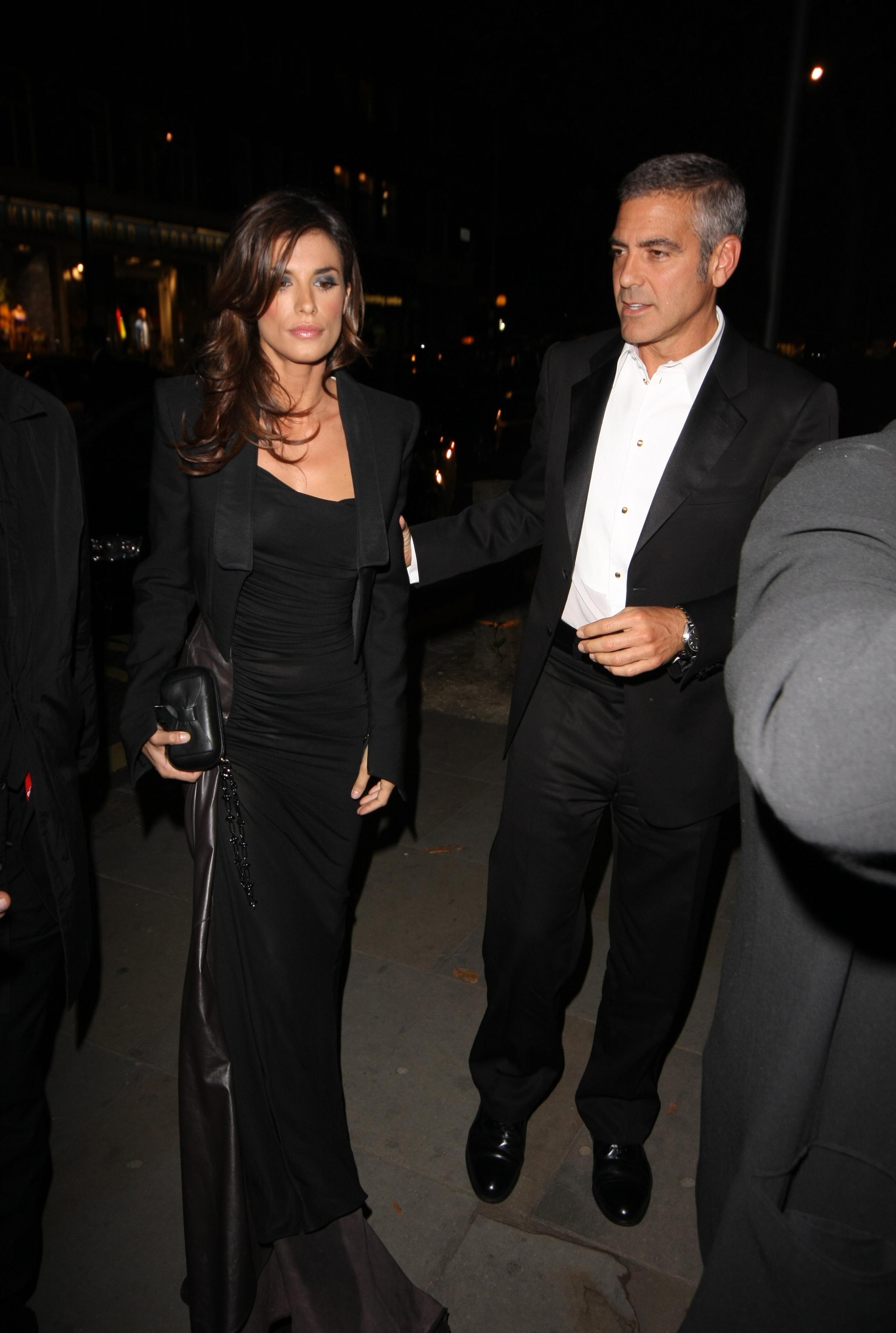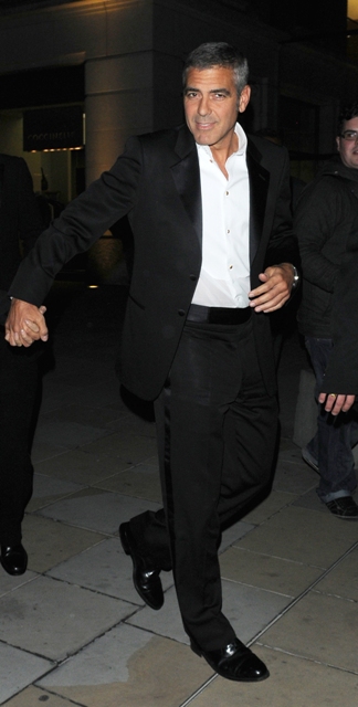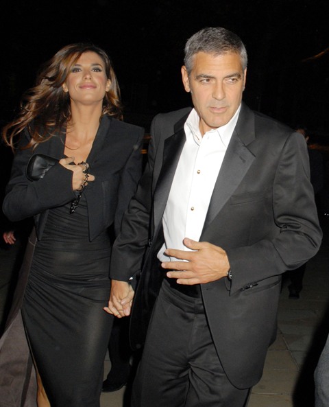 As you saw yesterday, George Clooney was accompanied last night in London by his Italian Queen Elisabetta Canalis and they hit up the afterparty together to meet up with Cindy Crawford, married to Clooney’s bff Rande Gerber who doesn’t appear to have made the trip.