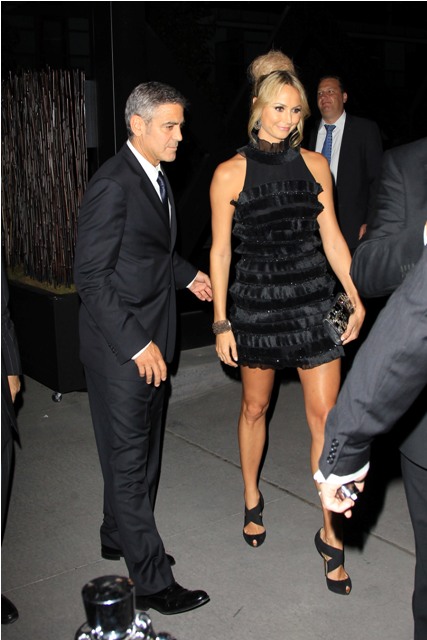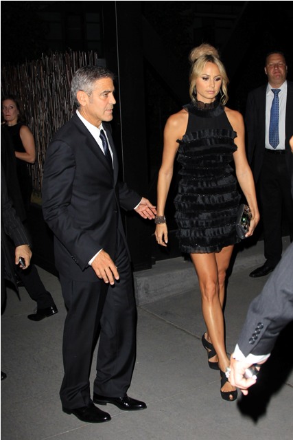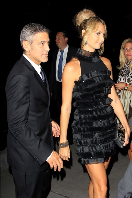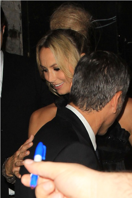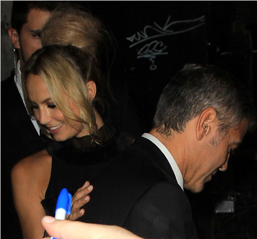 After a while his head of security took her upstairs. The party had spilled vertically. So she can be independent. When she returned, she waved at him and told him that it was better upstairs. He soon followed. And so did everyone else. It was indeed better upstairs. That's where George spent time with Gosling, Hamm etc - see above - and Stacy always near him, but not desperately so, greeting friends on her own, dancing, drinking...this is a good, GOOD time girl.