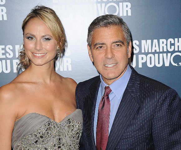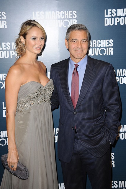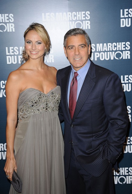 George Clooney gave Stacy Keibler permission to stand next to him on a red carpet the other day at the NY premiere of The Descendants. She must have passed the test. Because he took her to Paris with him and allowed her to do the same there. Still looking like they need to practise more in the mirror, non? This is what the Beckhams do all the time. Like any skill, it needs to be maintained.