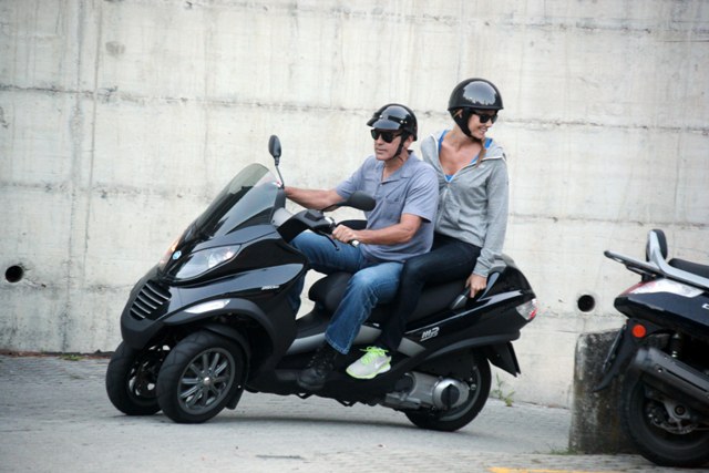 Katie Holmes threw herself off the back of Tom Cruise’s bike. He has yet to refill the position. George Clooney’s backseat however is still occupied. He took Stacy Keibler on a day trip to Switzerland the other day with some friends.