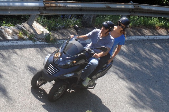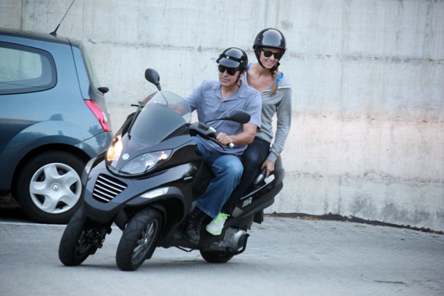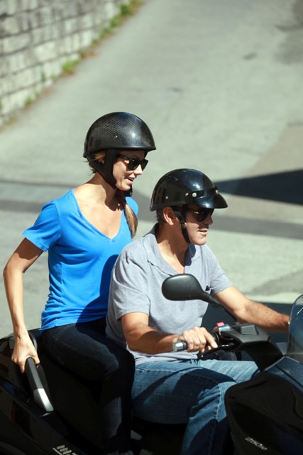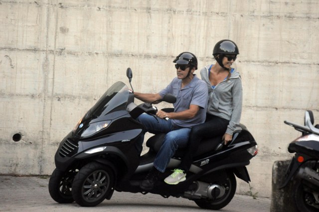 Katie Holmes threw herself off the back of Tom Cruise’s bike. He has yet to refill the position. George Clooney’s backseat however is still occupied. He took Stacy Keibler on a day trip to Switzerland the other day with some friends.